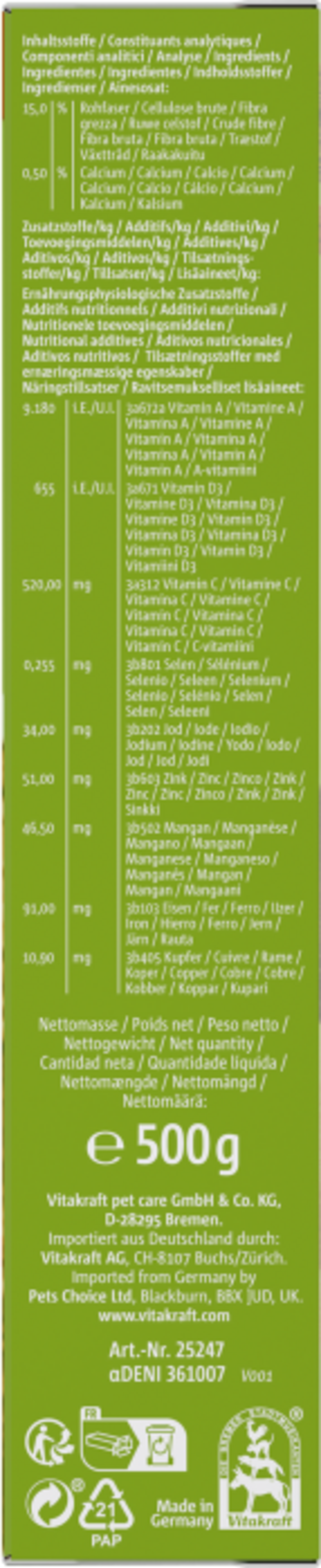 | Manufacturer: | Vitakraft pet care GmbH & Co. KG, Mahndorfer Heerstr. 9, 28307, Bremen, Germany, www.vitakraft.com/de/de |