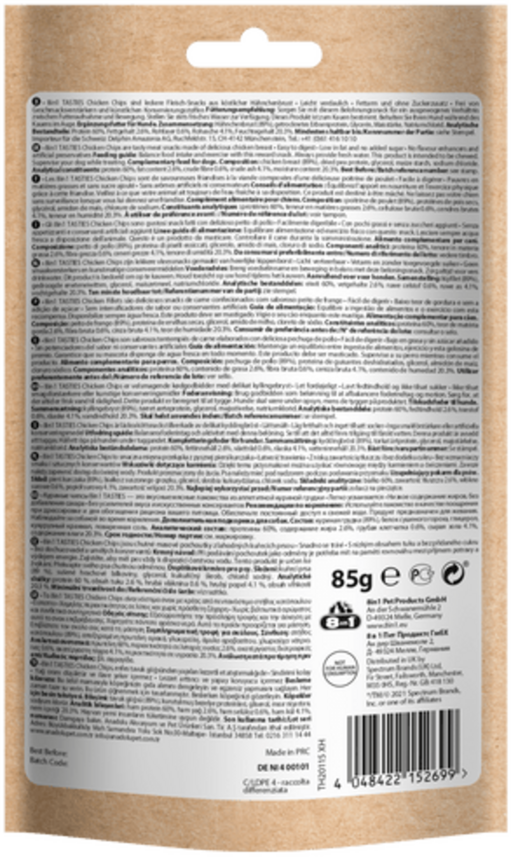 avis en français à propos du produit 8in1 Tasties - Chicken Chips 85g
