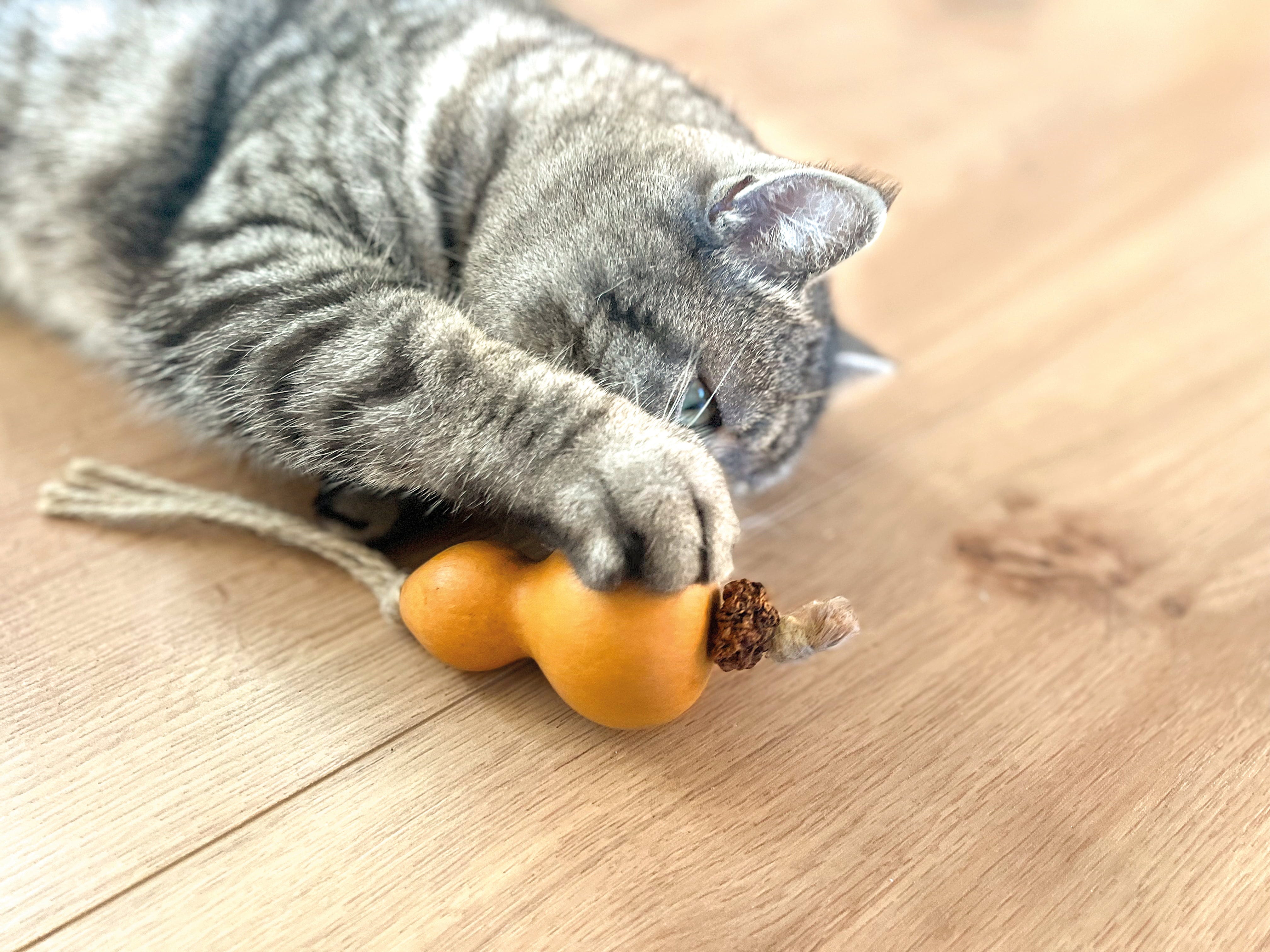 Ce jouet pour chats ne garantit pas seulement un divertissement agréable, il contribue également à l'hygiène dentaire de votre chat. Fabriqué à partir de matériaux 100% naturels et agrémenté d'herbe à chat et de Silver Vine - une herbe connue pour son effet sur les chats, originaire d'Asie - il apporte une diversité adaptée aux besoins de votre chat.