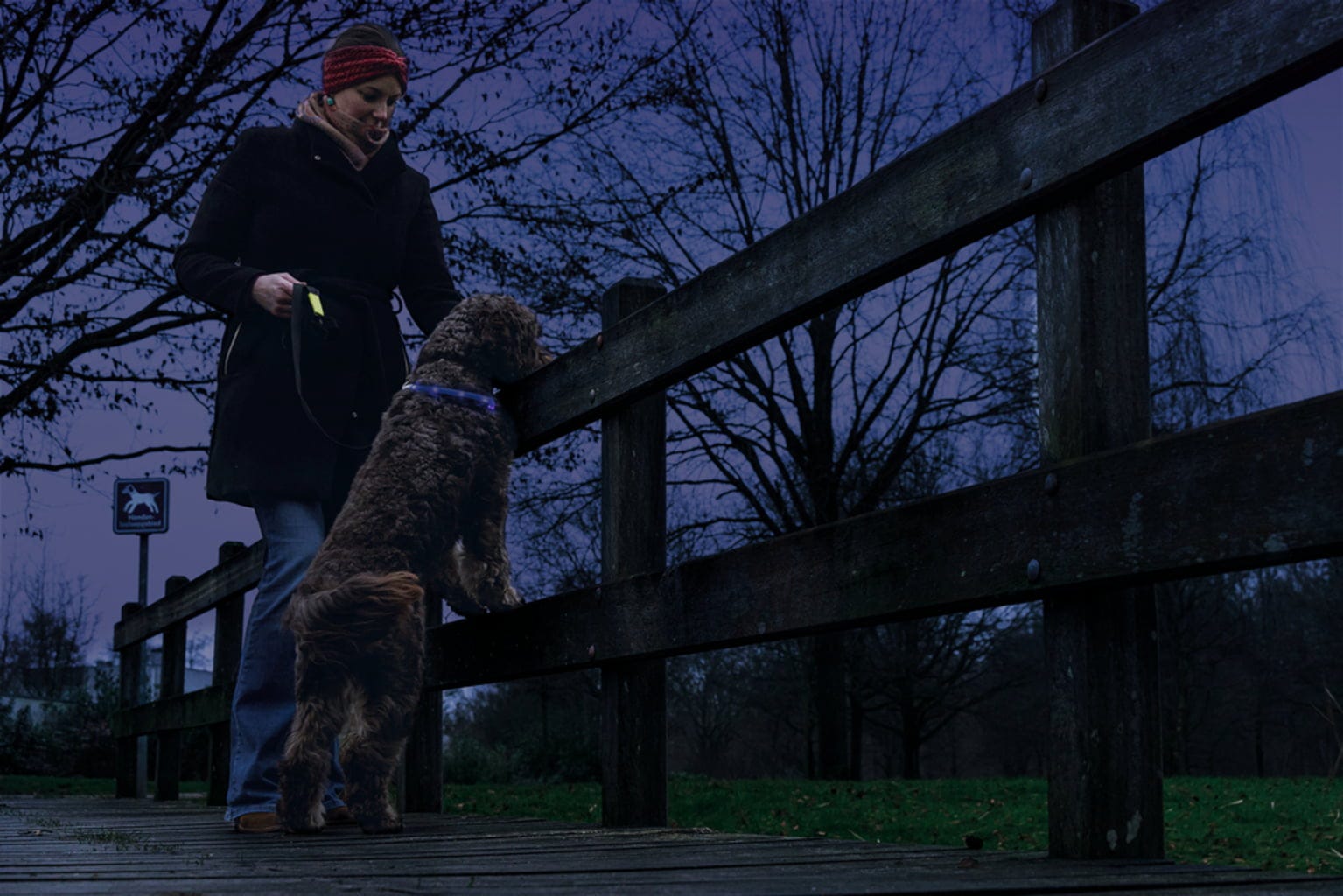 Safety Gear Dogini n’est pas seulement un accessoire élégant : ce collier en silicone permet également à votre chien de rester bien visible dans l’obscurité.