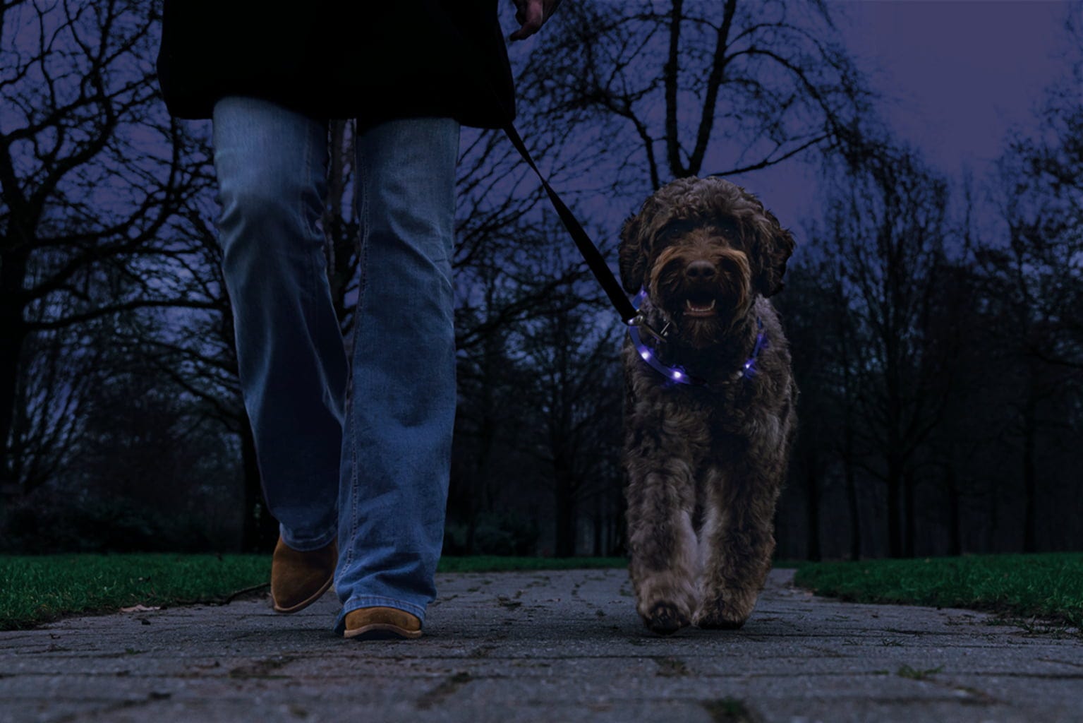 Safety Gear Dogini n’est pas seulement un accessoire élégant : ce collier en silicone permet également à votre chien de rester bien visible dans l’obscurité.