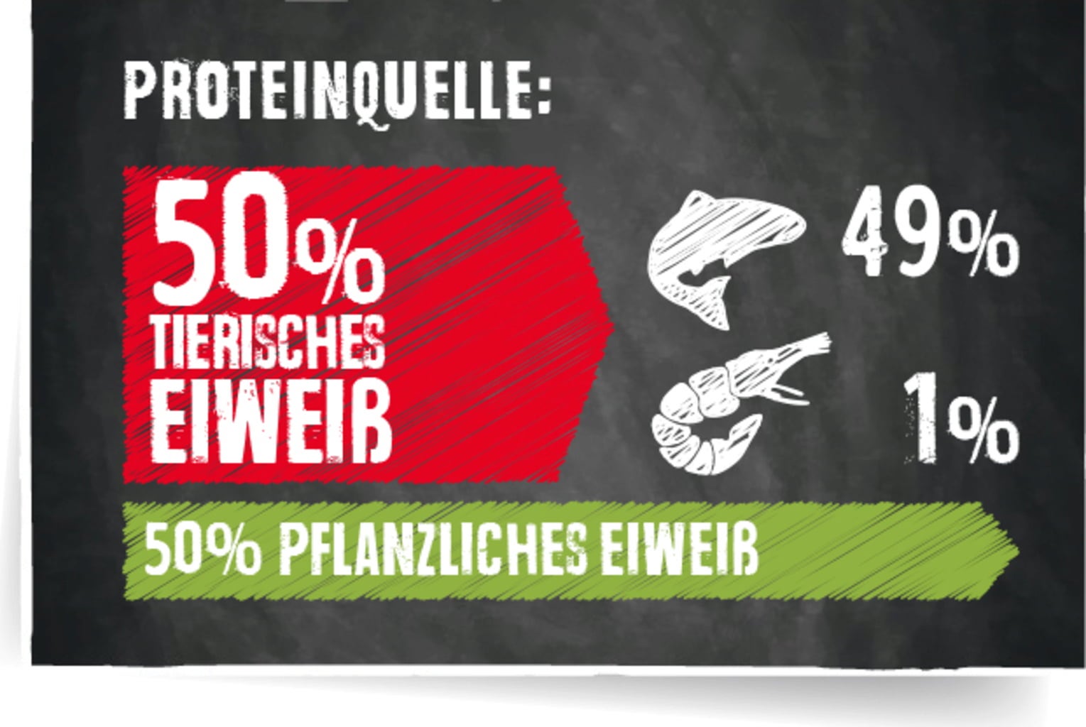 En remplacement des céréales, Mix it utilise de l’amarante et du krill. Le produit contient 50 % de protéines animales : 49 % issues du plancton marin et 1 % du saumon ; il convient ainsi parfaitement aux chiens sensibles aux protéines carnées. Le saumon utilisé est hydrolysé, de sorte que ses dérivés ne provoquent pas de réactions allergiques. Sans soja, céréales, lait ni viande !