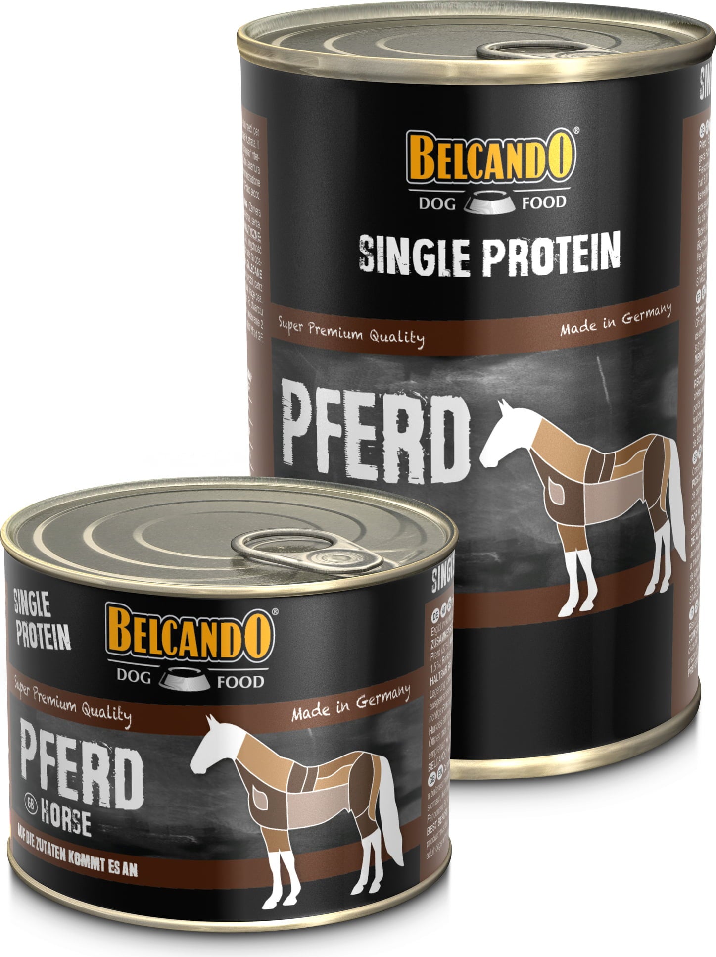 La nourriture en boîte premium Single-Protein ne nécessite aucun ajout complémentaire. Elle contient exclusivement de la viande de cheval soigneusement préparée, pour offrir à votre chien une expérience gustative exceptionnelle.