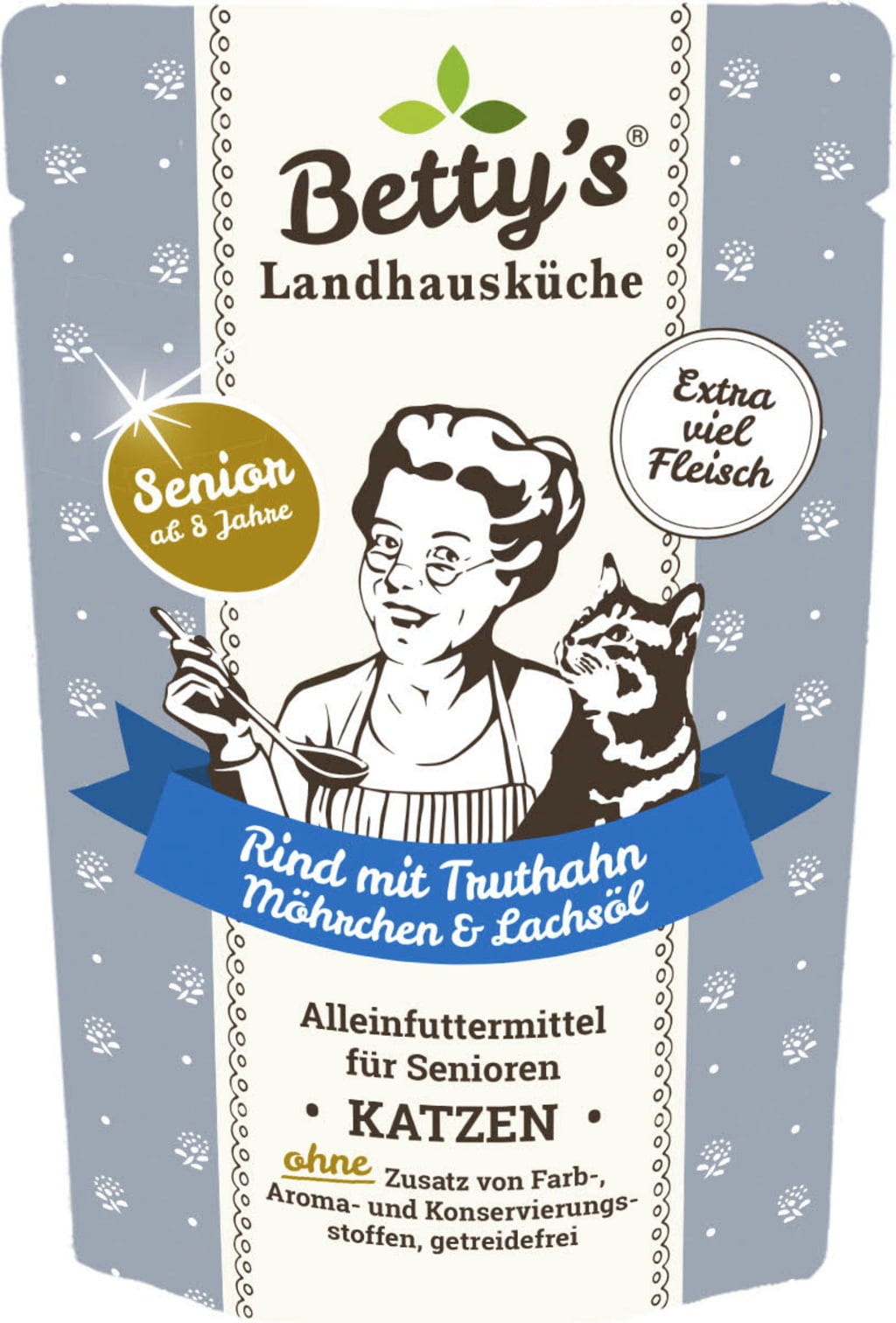 avis en français à propos du produit Betty's Landhausküche Aliment en Sachet pour Chats Senior - Bœuf, Dinde, Carottes & Huile de Saumon