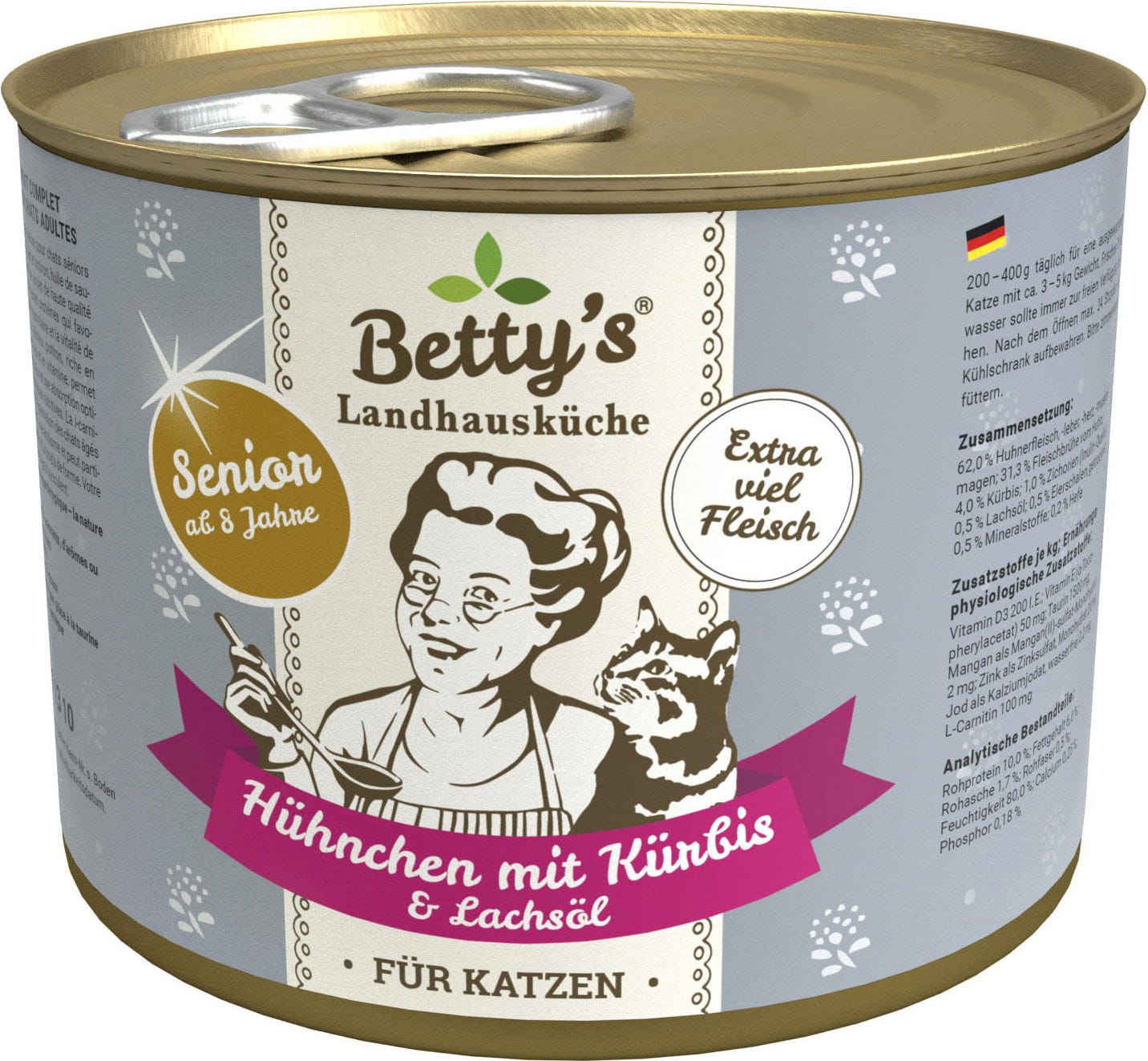 avis en français à propos du produit Betty's Landhausküche Aliment pour Chat Senior - Poulet avec Potiron et Huile de Saumon