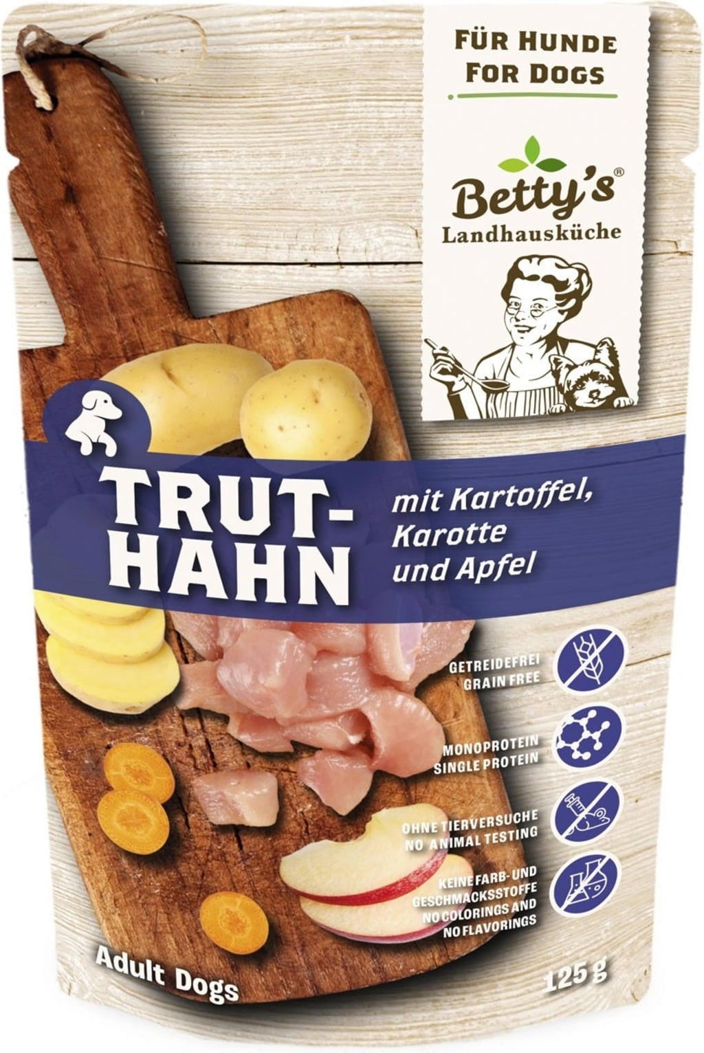 Betty's Landhausküche Pâtée pour Chiens en Sachet - Dinde avec Pommes de terre, Carottes & Pommes, 125 g