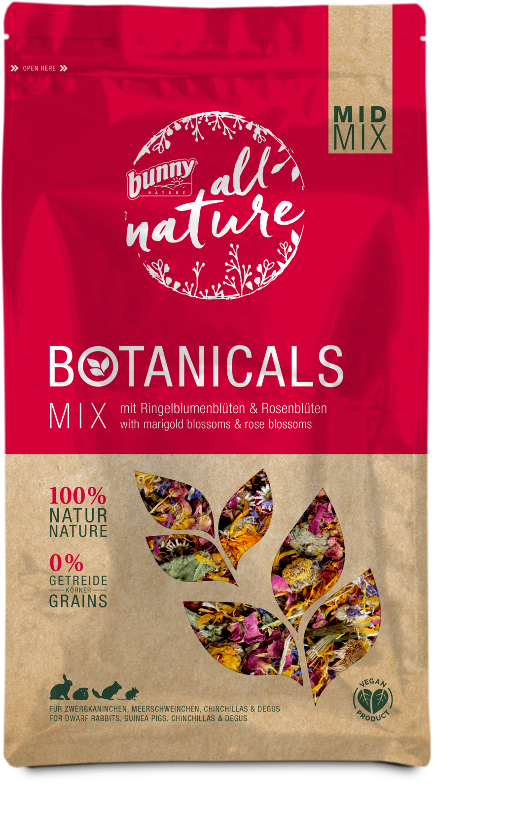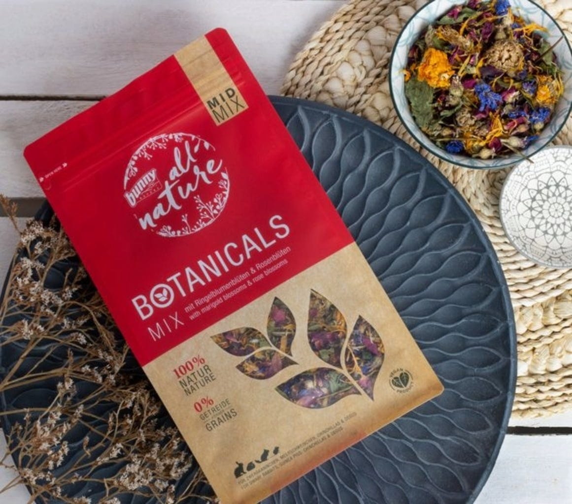 - Peut être donné en tant que snack ou mélangé avec le bunny Botanicals Maxi Mix pour obtenir un aliment complet