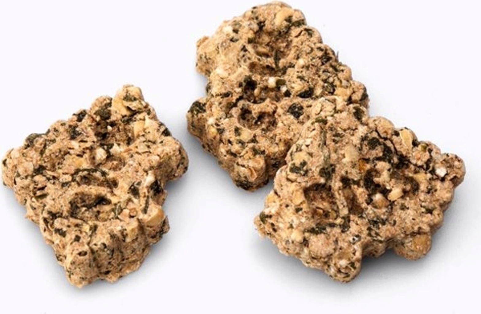 épeautre, amidon d'avoine, riz, 10 % persil, marc de fruits, son d'avoine, Lignocellulose, carbonate de calcium, chicorée en poudre (0,5 % inuline)