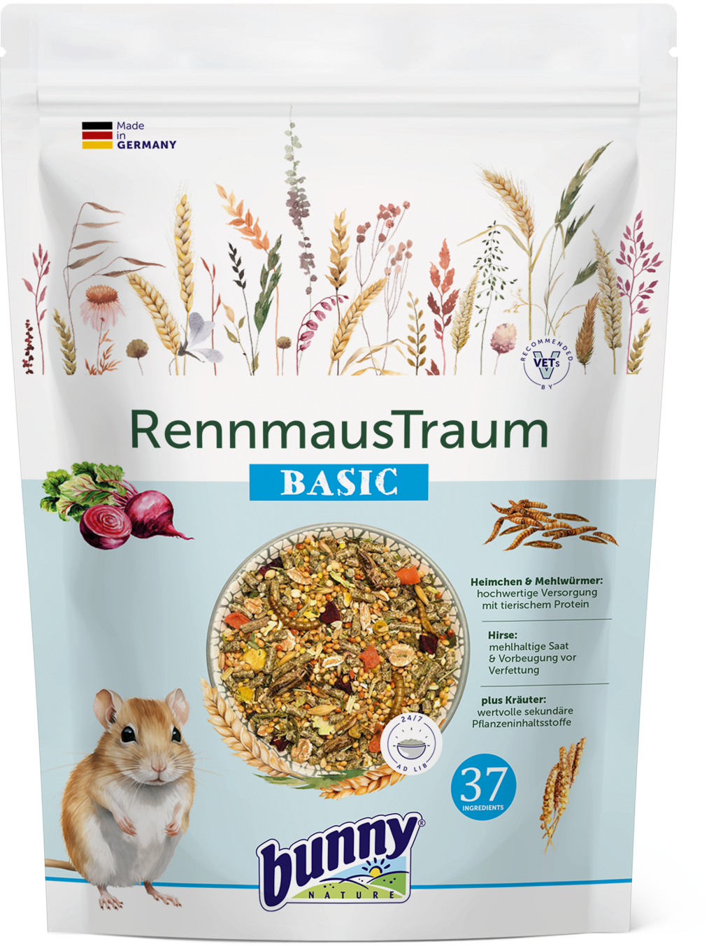 Cet aliment complet pour gerbilles est spécialement adapté aux besoins de ces petits rongeurs et permet une alimentation conforme à l’espèce, à base d’ingrédients végétaux et animaux soigneusement sélectionnés. Des composants issus de l’habitat naturel des gerbilles assurent une très haute acceptation et répondent à leurs habitudes alimentaires naturelles.