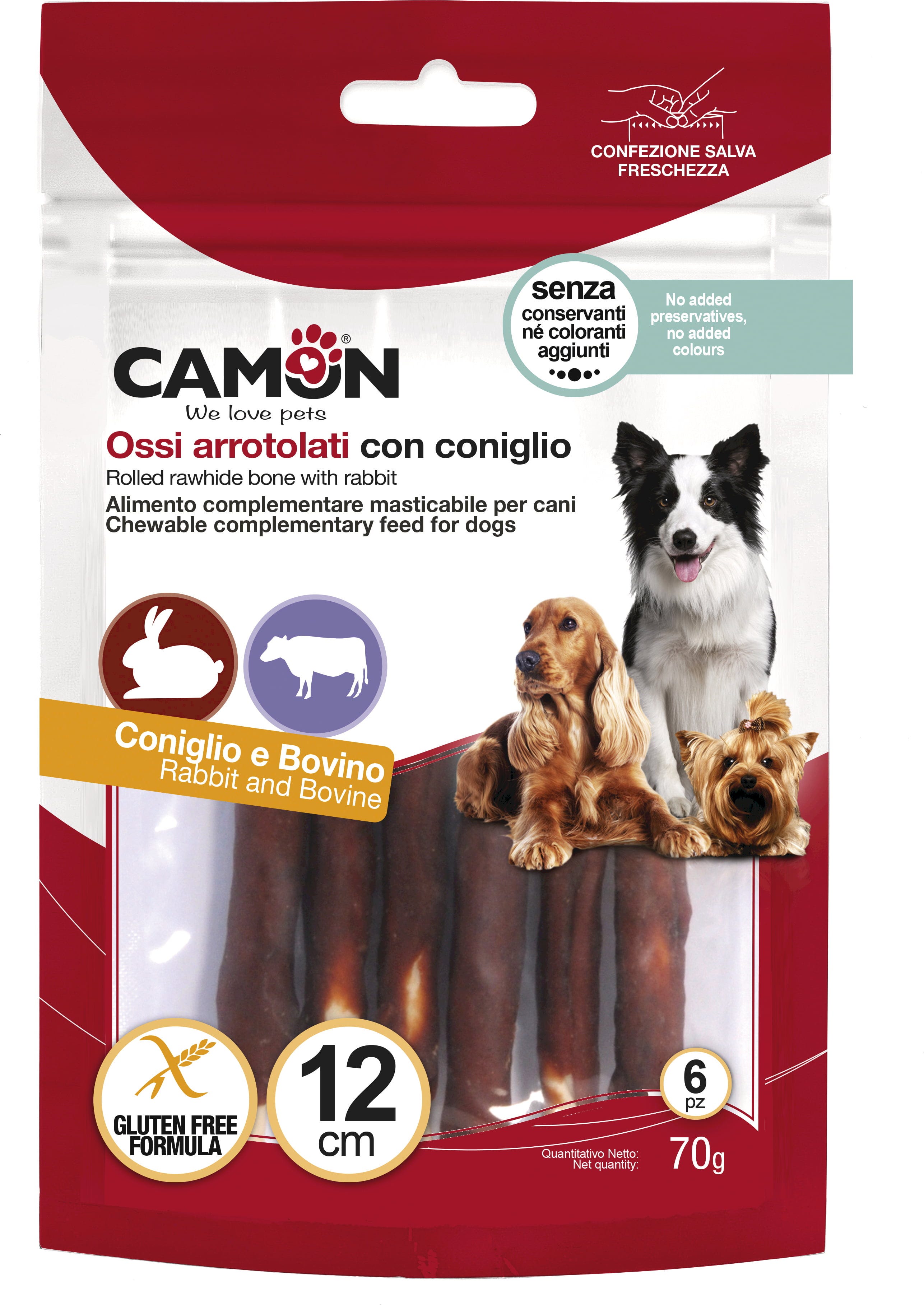 Camon Rouleau à Mâcher de Bœuf au Lapin, 6 pièces de 12 cm (70 g)