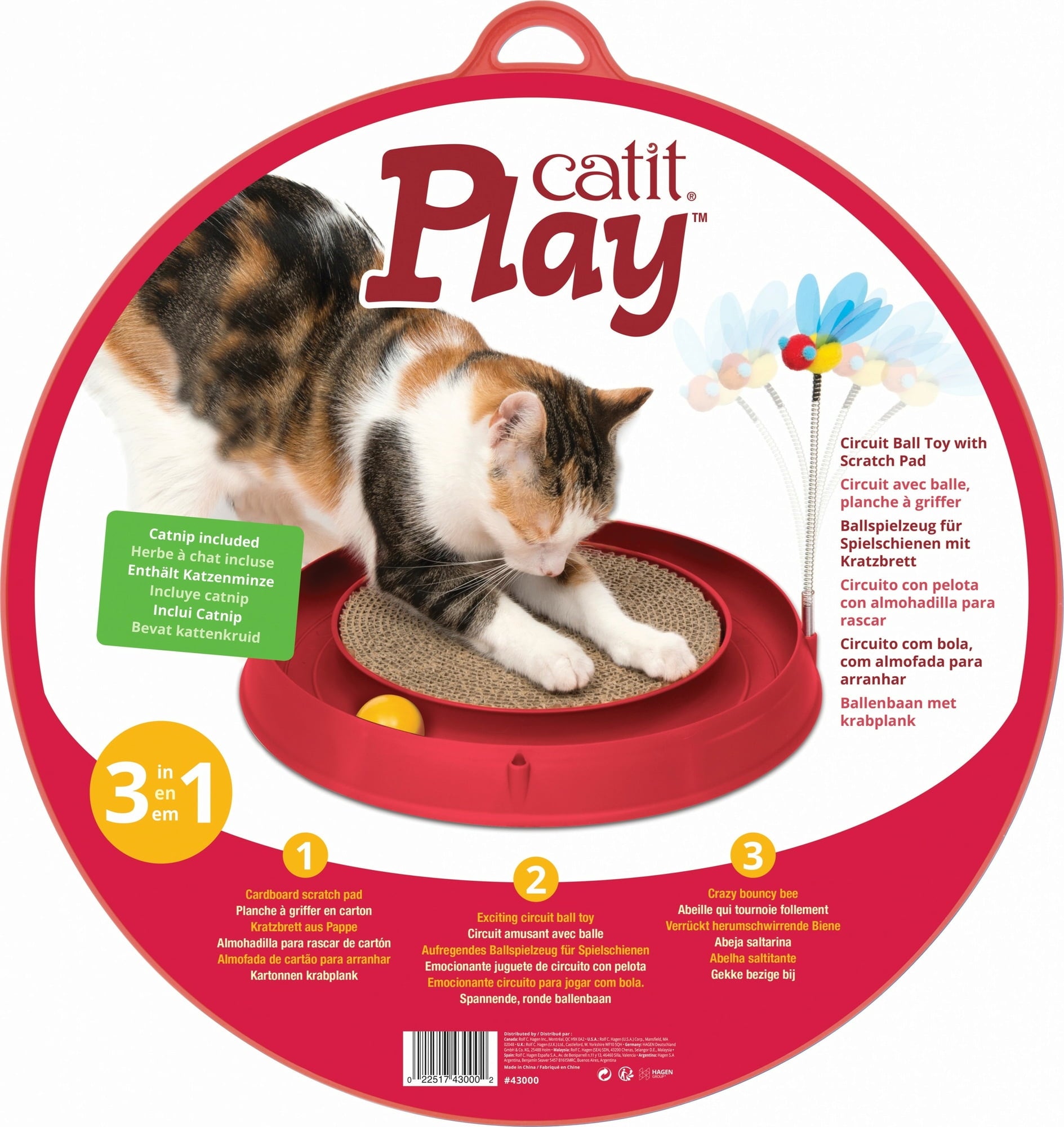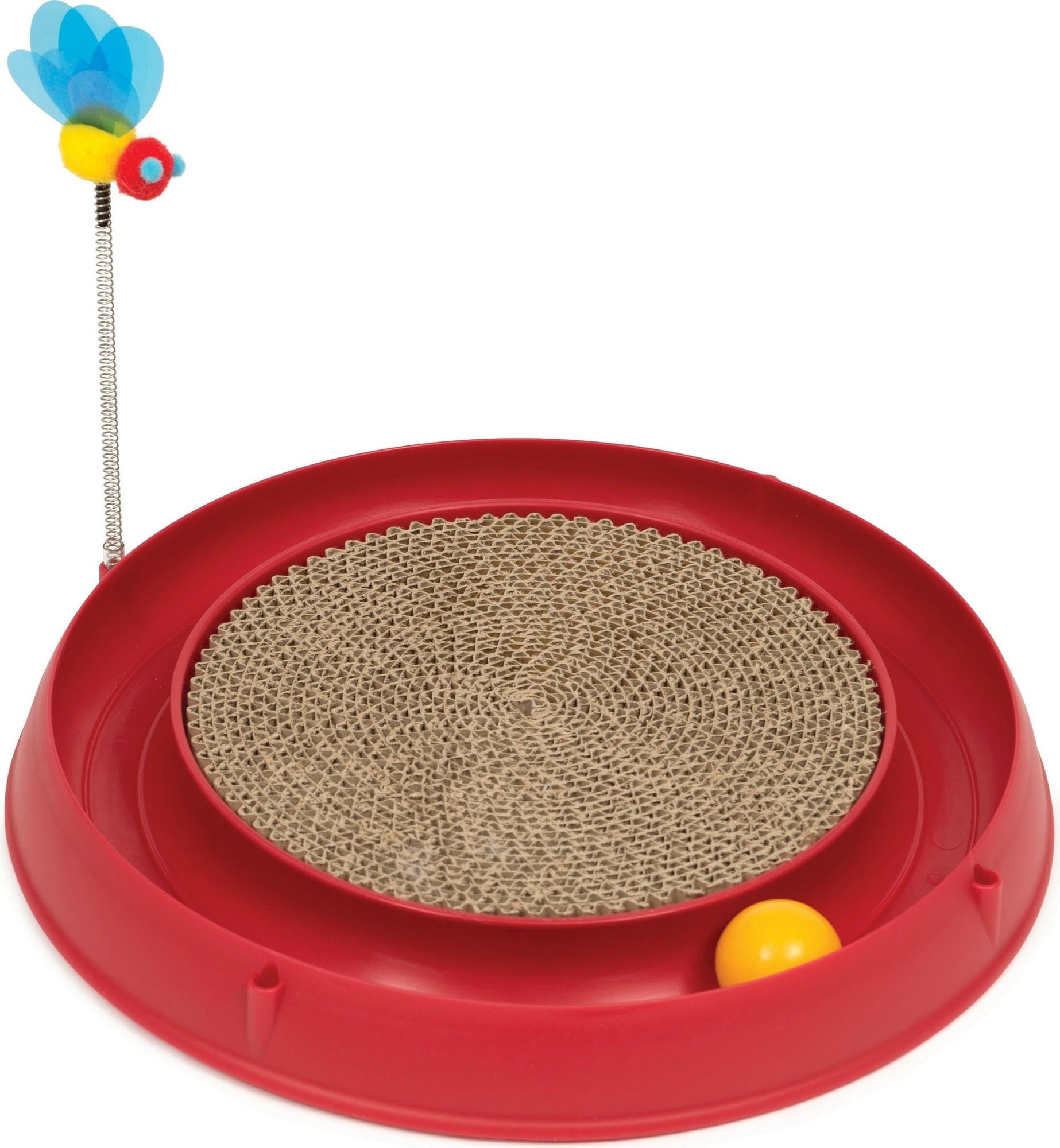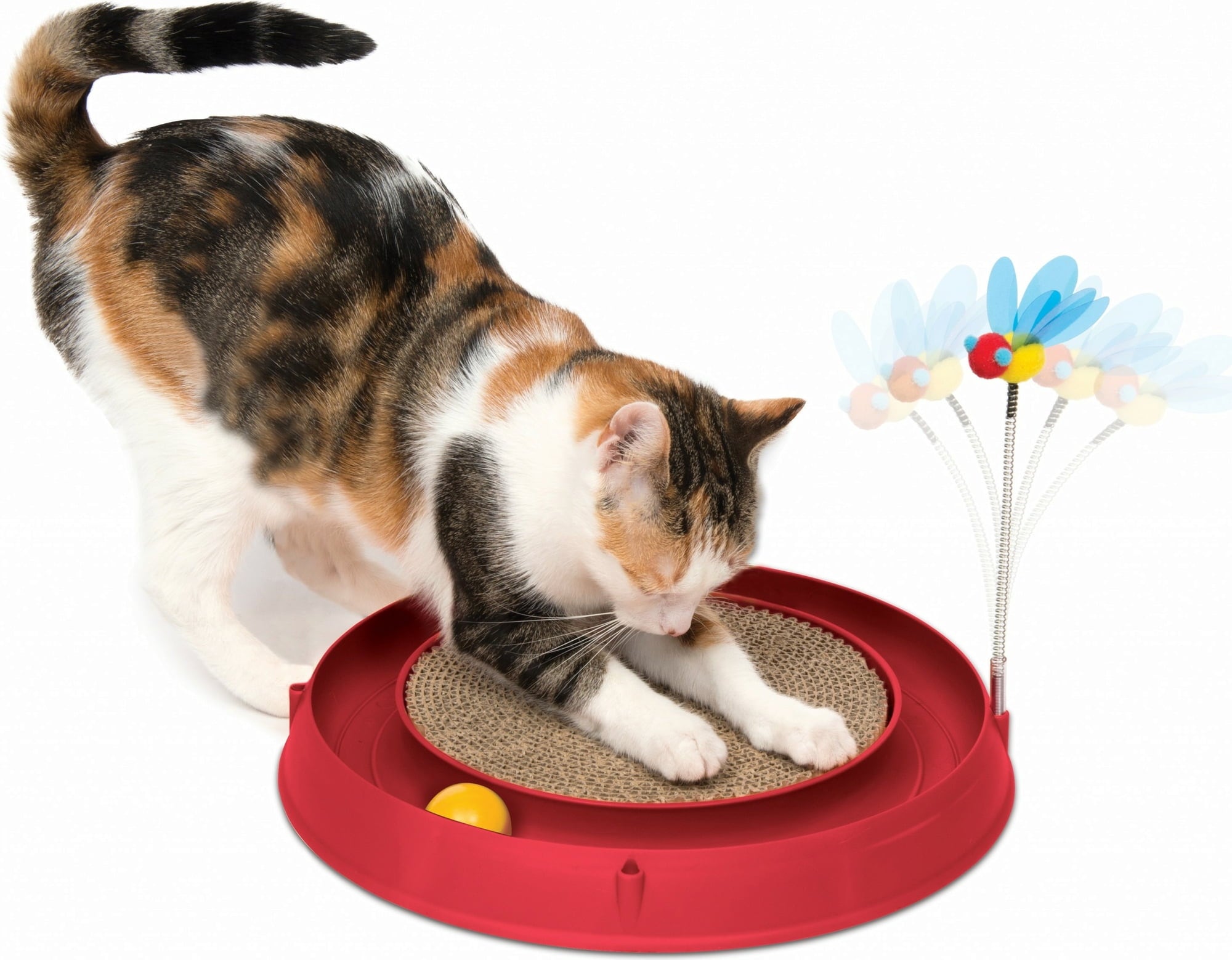 Ce circuit incite les petits félins à jouer avec la balle ainsi qu'avec l'abeille qui s'agite sur son ressort. Un divertissement passionnant, donc, accompagné d'un soin des griffes et de détente grâce au griffoir qui se trouve au milieu