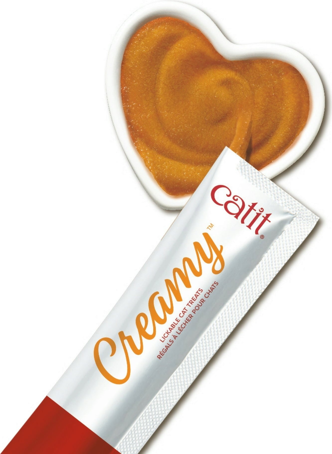 Les Creamy de Catit sont des friandises à lécher pratiques, en petites portions, idéales en récompense entre les repas. Leur teneur élevée en viande en fait un excellent aliment complémentaire, par exemple avec des croquettes. Il contient également de la taurine précieuse et de nombreux acides aminés, pour une meilleure vitalité. Les ajouts habituels de céréales, de maïs ou de soja sont ici absents, ainsi que tout additif artificiel.