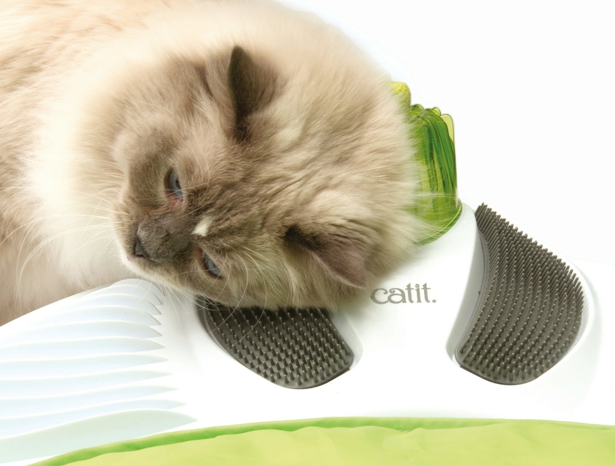 Votre chat y trouvera un endroit pour se détendre, et pour profiter de massages de la tête, du cou, du visage et du corps. Les brosses attrapent les poils détachés ou tombés. La cerise sur le gâteau étant bien sûr le stimulateur de gencives à petits picots, que votre chat adorera mâcher. Un centre de bien-être disponible à tout moment, pour l'hygiène buccale de votre chat, sa vitalité et sa sérénité.