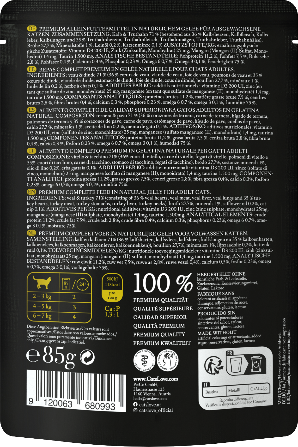 CAT's LOVE Adult - Pâtée au veau & à la Dinde, 85 g