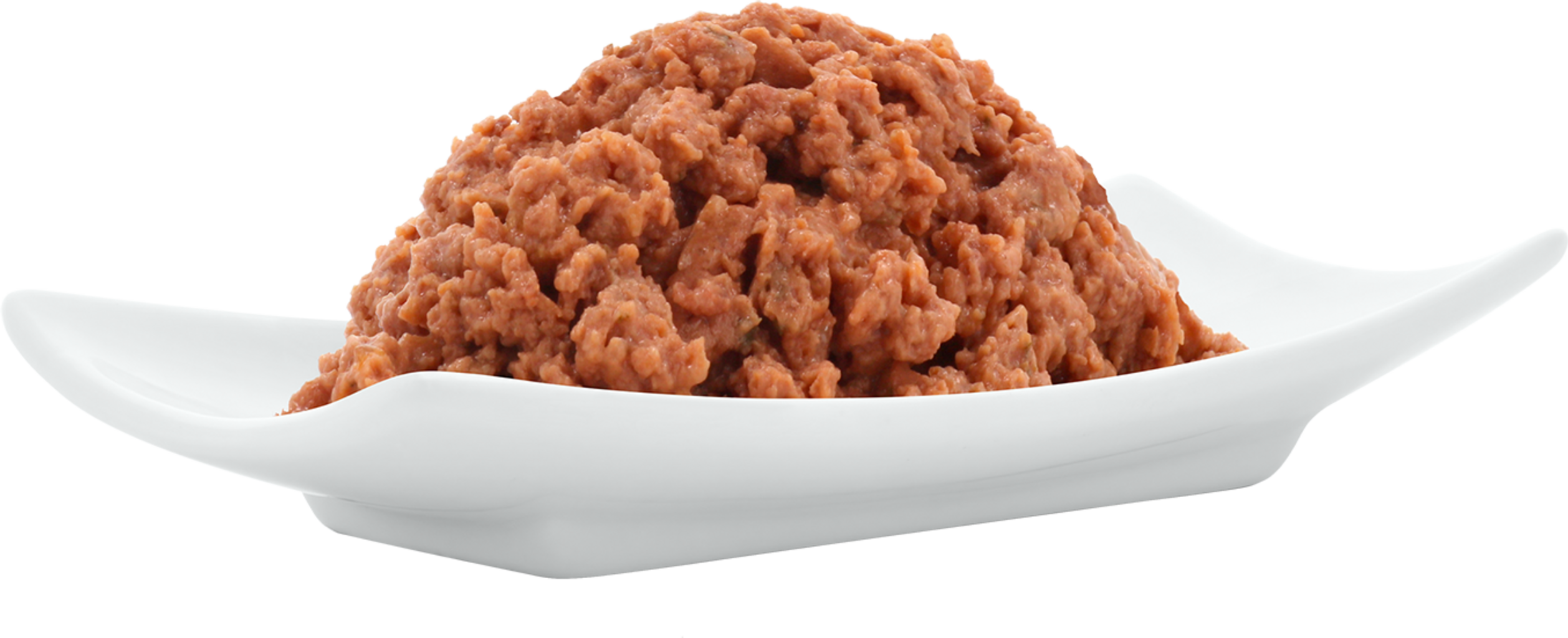 - Plus de 94 % de viande, poisson, fruits de mer, abats et jus de cuisson, complétés par une faible proportion de légumes, fruits et autres ingrédients adaptés aux chats