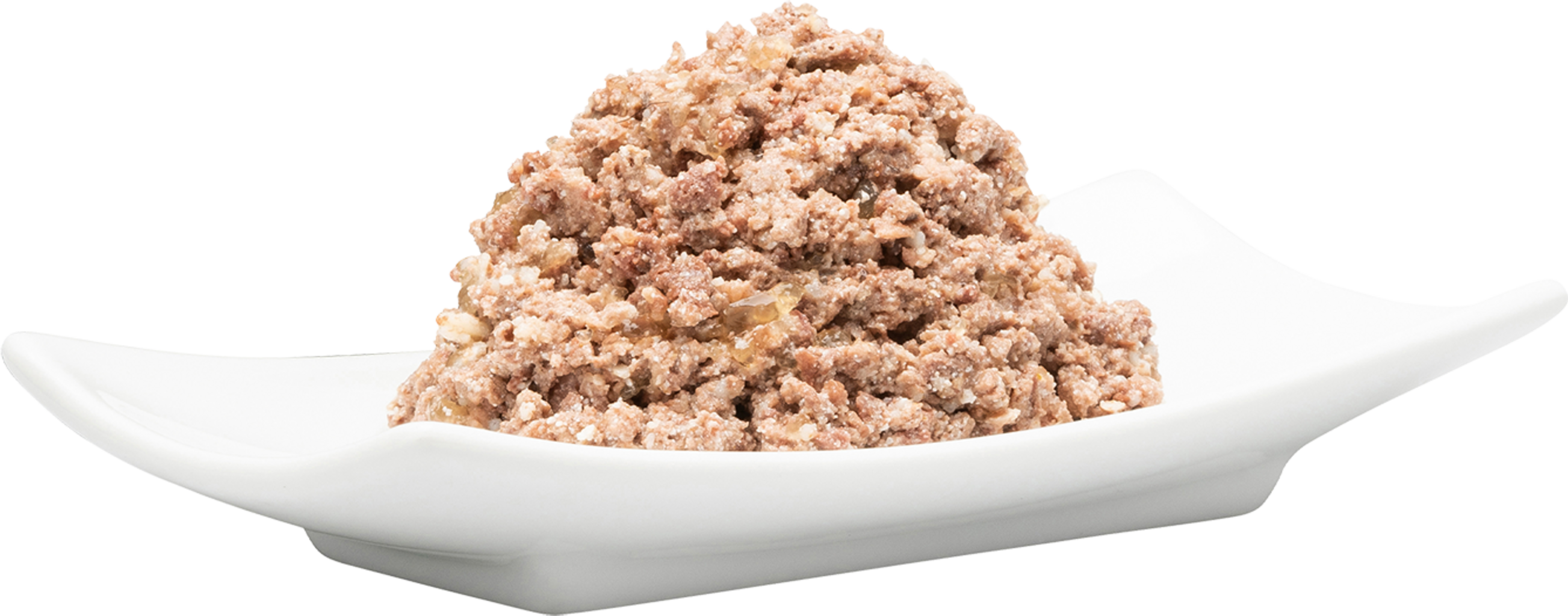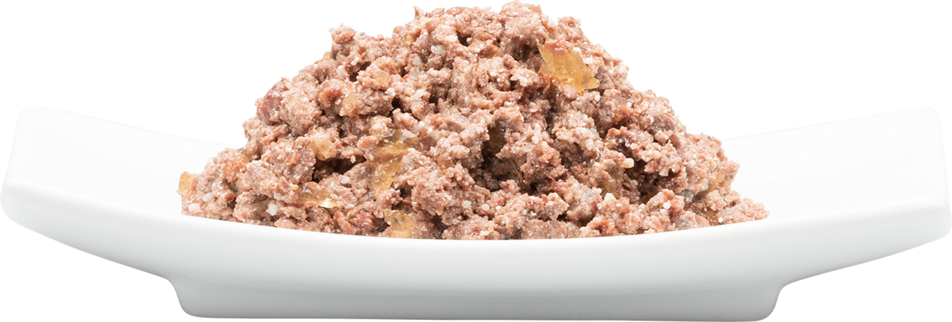 - Plus de 98 % de viande, poisson, fruits de mer, abats et bouillon de cuisson, complétés par des légumes, fruits, herbes et huiles précieuses – comme dans le contenu gastrique d’une proie