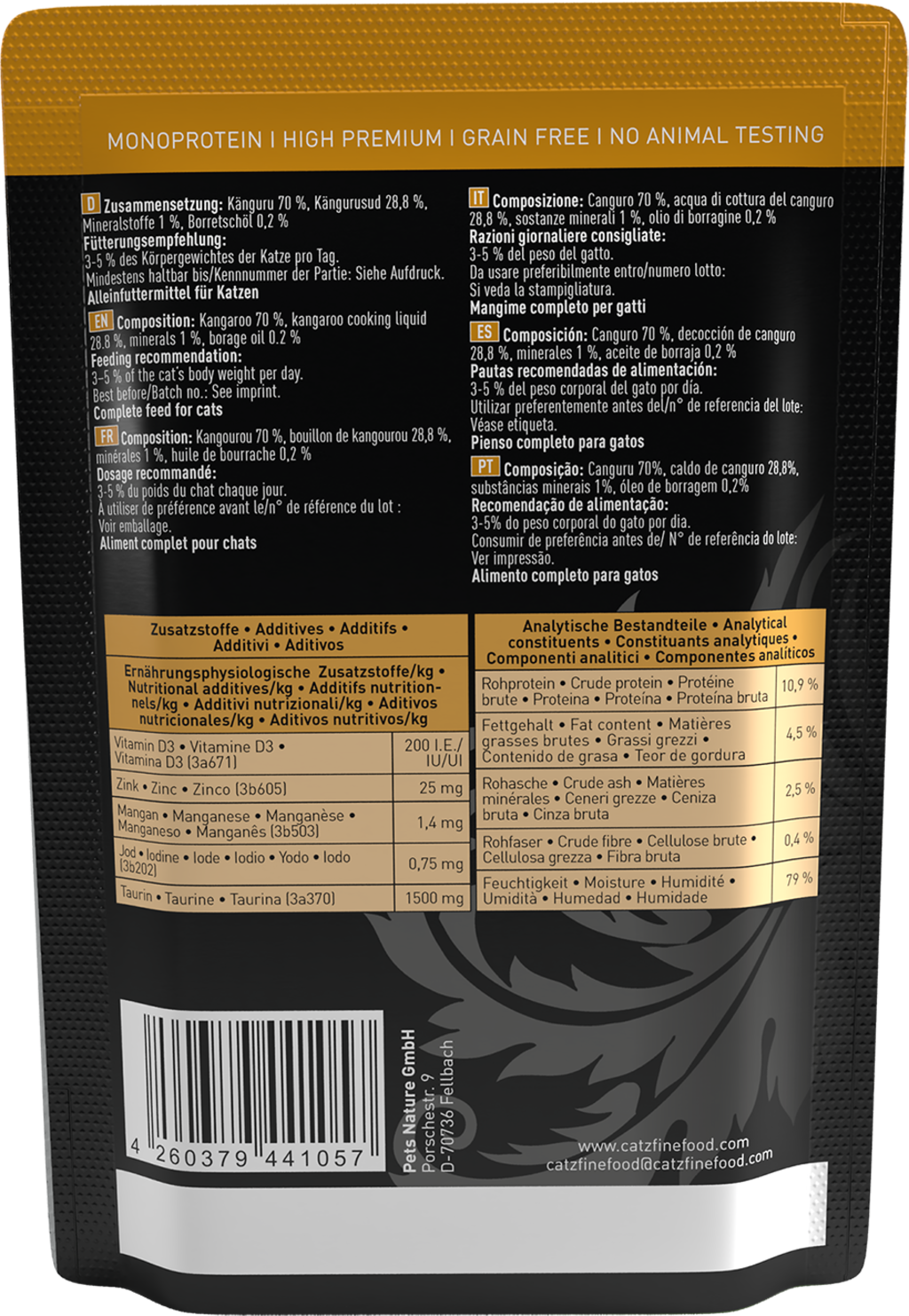 avis en français à propos du produit catz finefood Purrrr No. 107 Kangourou - Pouch