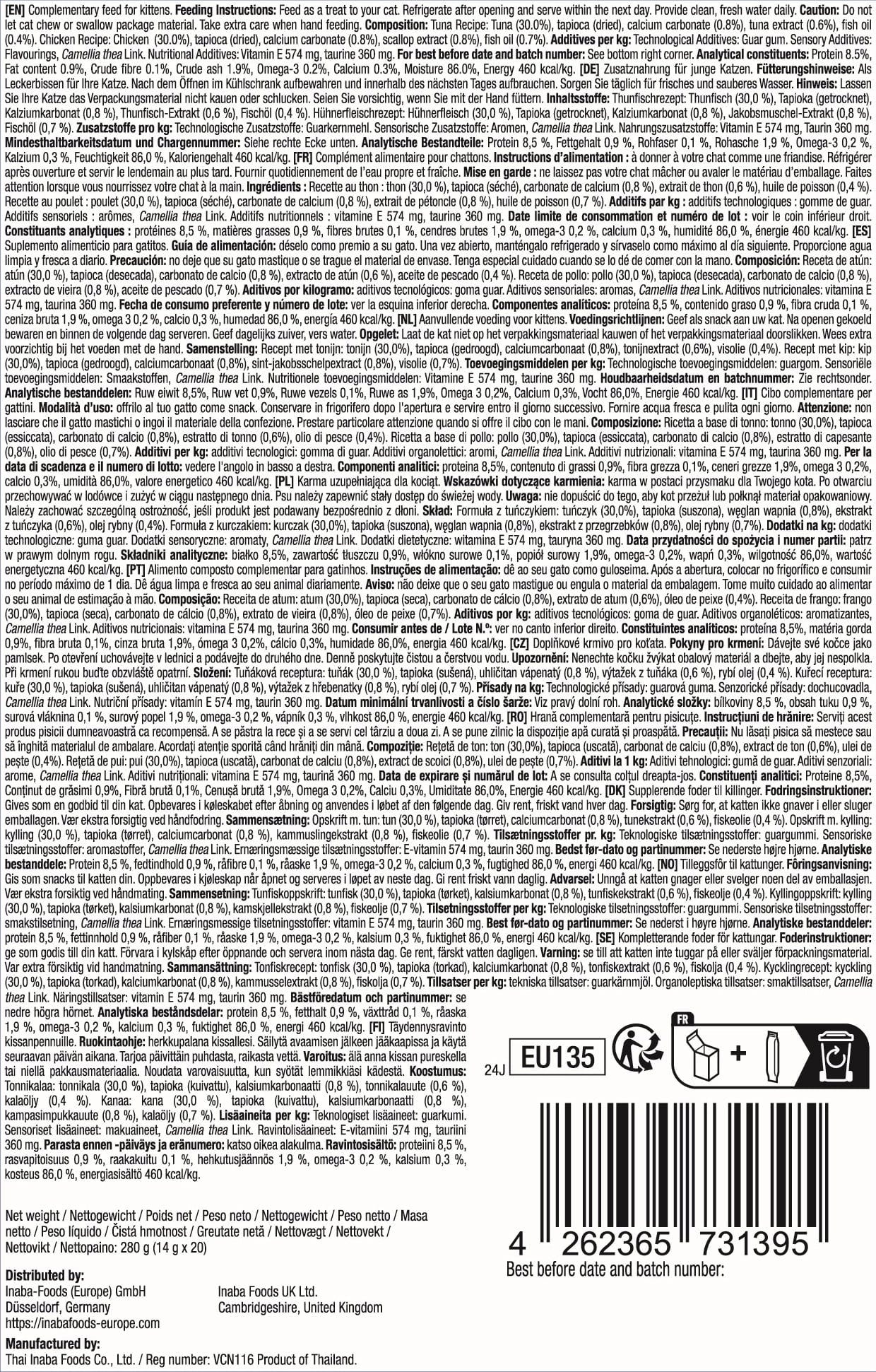 Churu Friandise à Léchir pour Chatons Churu 20x14g, 280 g