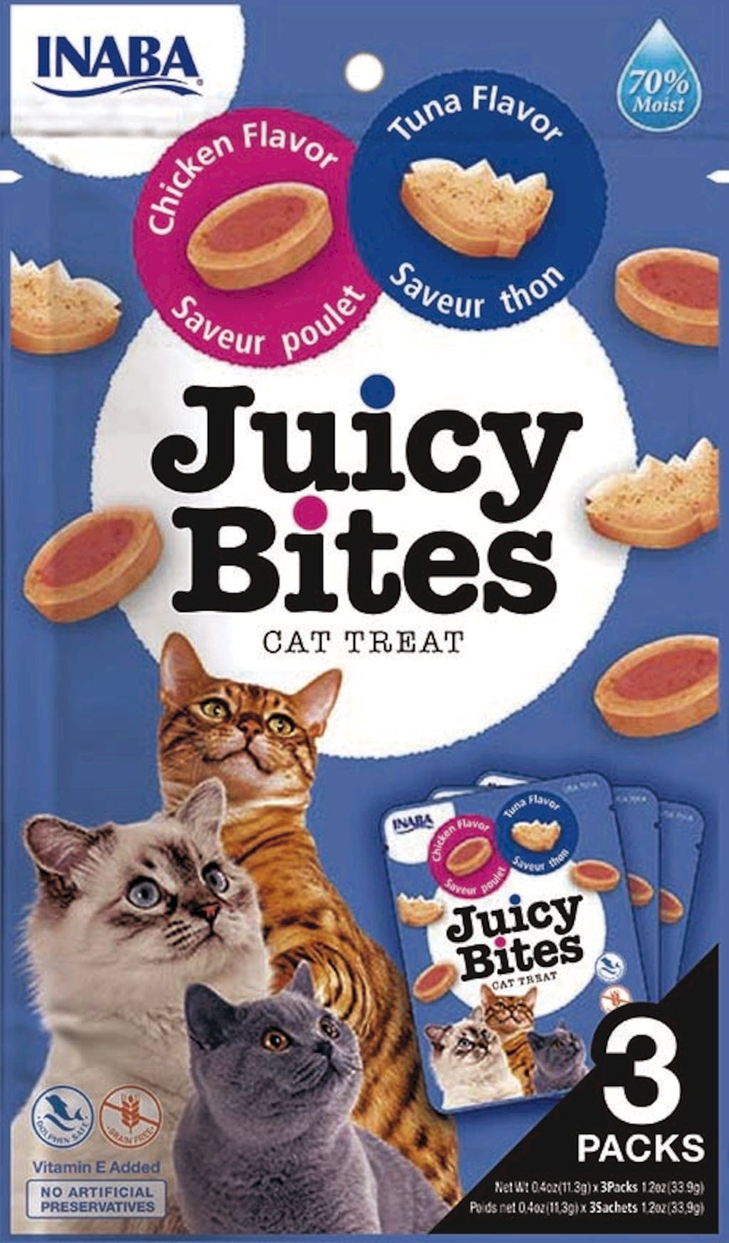 Churu Juicy Bites pour Chats Gatti 3 x 11,3 g, Arômes de poulet et de thon (34 g)