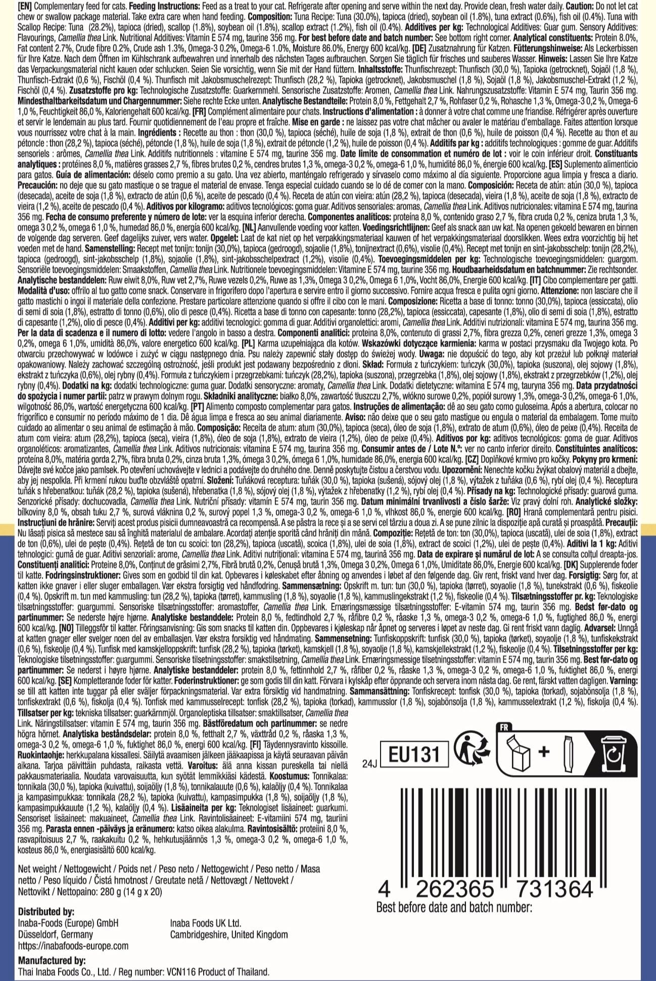 Ce snack à lécher irrésistible séduira même les chats les plus exigeants. Des ingrédients soigneusement sélectionnés et une recette adaptée aux besoins du chat en font une friandise de grande qualité, idéale pour le gâter au quotidien.