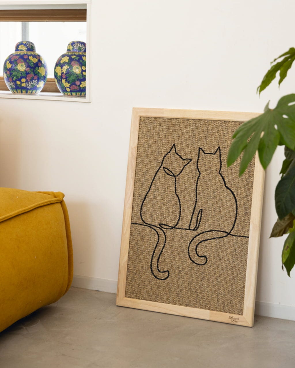 Ce griffoir au motif original offre à votre chat une solution peu encombrante pour faire ses griffes tout en apportant une touche décorative à votre intérieur. Il suffit de le fixer à un endroit adapté au mur pour garantir de longues heures d’activité.