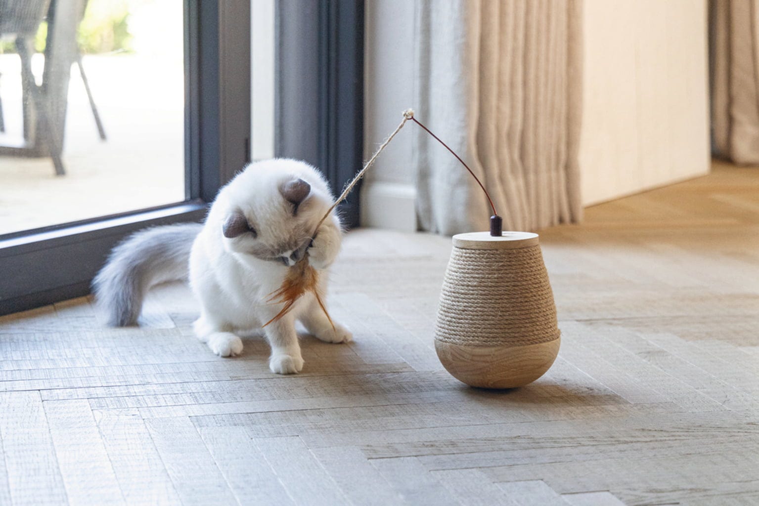 Ce jouet offre à votre chat un pur moment de divertissement tout en proposant une surface griffoir sécurisée. La petite balle amusante avec plume fixée au sommet est idéale pour jouer, tandis que l’effet bascule garantit des heures d’amusement. Ainsi, votre chat ne s’ennuiera plus et vos meubles resteront intacts.