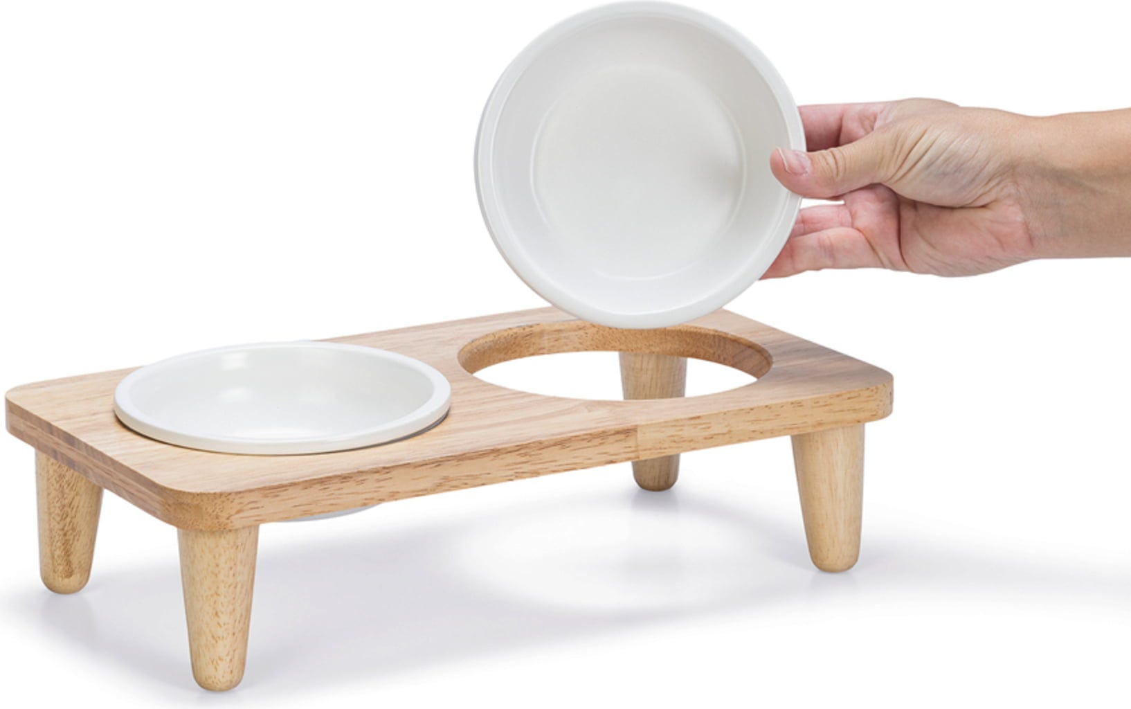 - 2 écuelles amovibles en céramique pour croquettes et nourriture humide (l’eau doit toujours être proposée séparément)