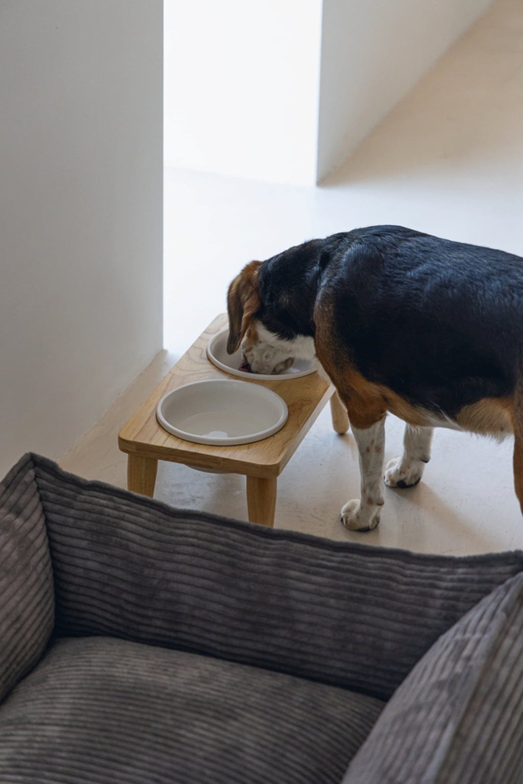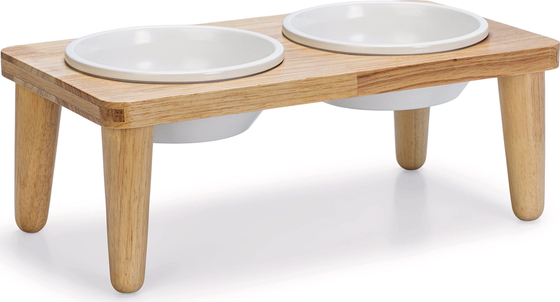 À table ! Ce set élégant en bois est aussi décoratif que fonctionnel et offre suffisamment d’espace pour la nourriture et l’eau grâce à ses deux gamelles en céramique. Son design moderne et minimaliste s’intègre harmonieusement dans de nombreux intérieurs. Un incontournable pour les propriétaires de chiens sensibles au style.