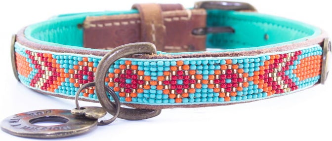 Collier à perles en cuir turquoise doux. Les perles cousues au cuir sont ce qui rend ce collier si spécial et si unique, où que vous alliez avec votre chien.