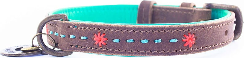 Joli collier pour chien fabriqué à la main à petites fleurs. Il est assorti à toutes les laisses de la collection.