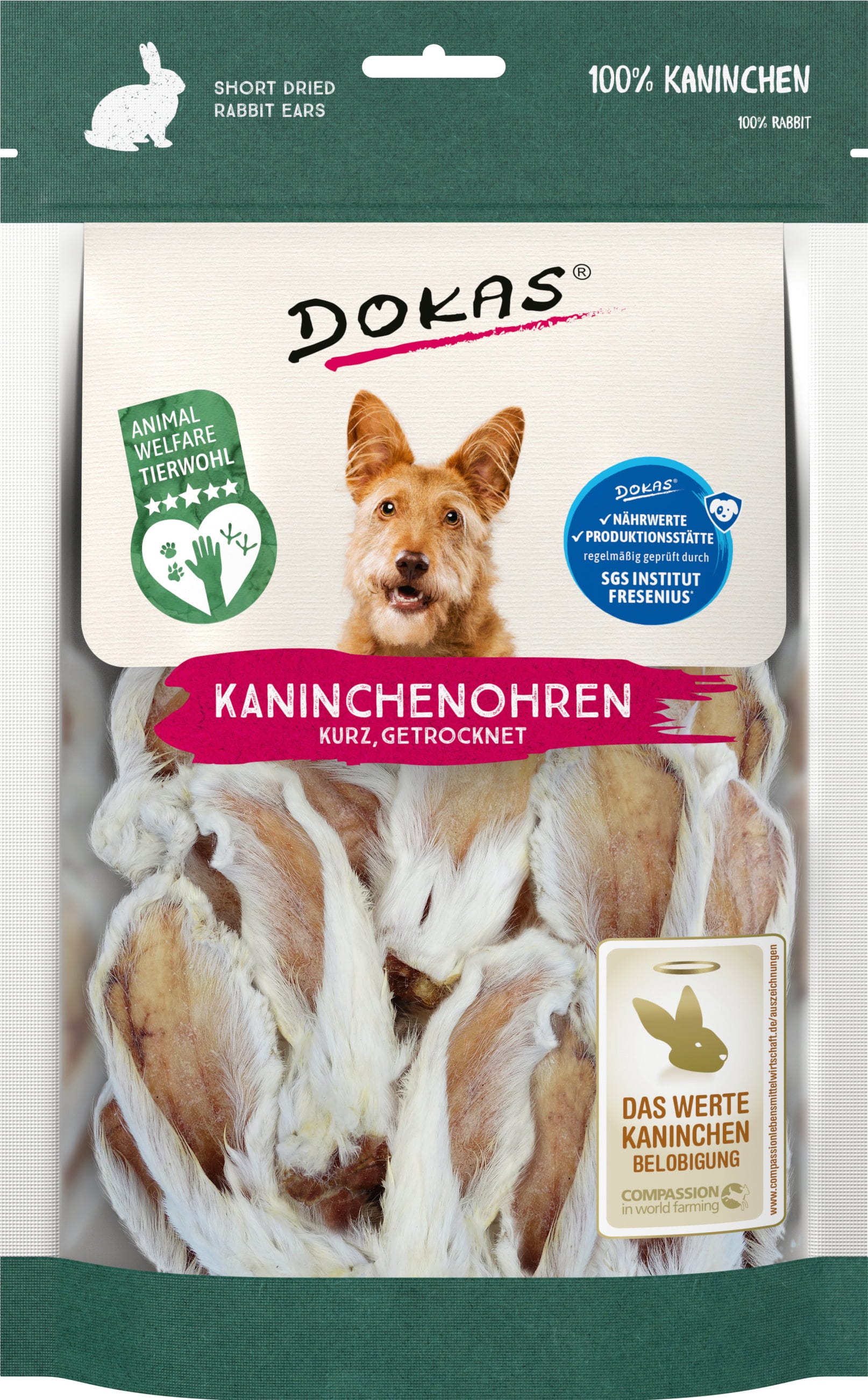 Dokas Oreilles de Lapin avec Poil Courtes, 100 g
