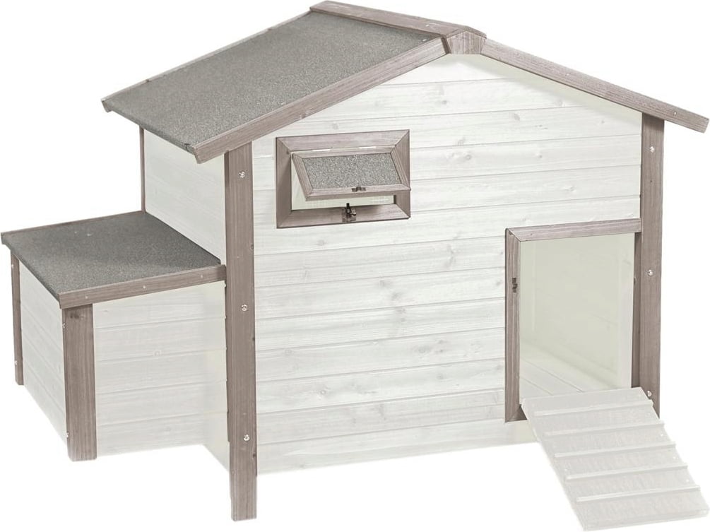 Le poulailler peut accueillir confortablement jusqu'à trois poules et les protège efficacement des intempéries. Le toit peut être entièrement ouvert pour nettoyer le poulailler ou nourrir les poules. L'installation se fait en un clin d'œil.