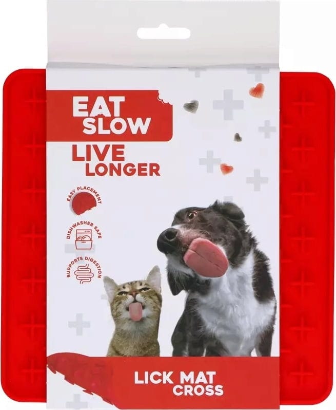 Eat Slow Live Longer - Tapis de Léchage Cross, Rouge