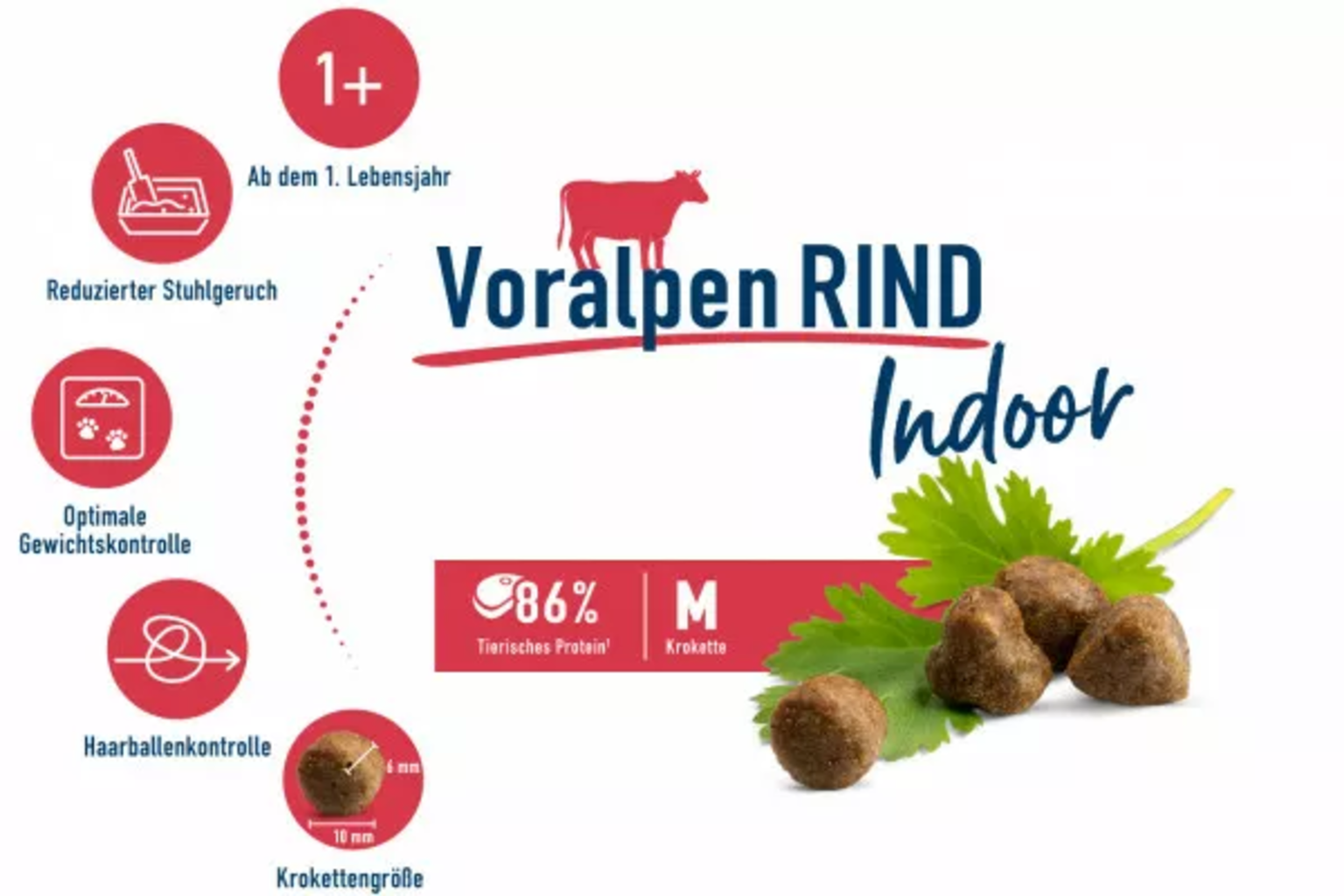 Ce mélange savoureux de délicieux bœuf des Préalpes, de coriandre aromatique et de chardon-marie épicé est spécialement adapté aux besoins des chats d'intérieur. Alors que les fibres naturelles peuvent aider à réduire les boules de poils, le yucca aide à réduire les odeurs indésirables dans la litière. Les grandes croquettes (environ 10 mm) sont composées à 86 % de protéines animales et ont une teneur équilibrée en matières grasses.