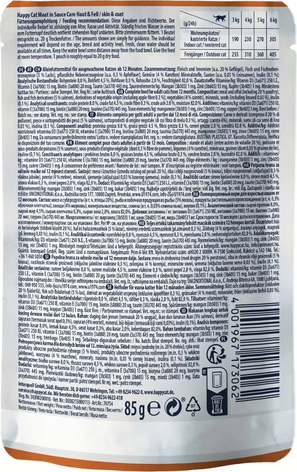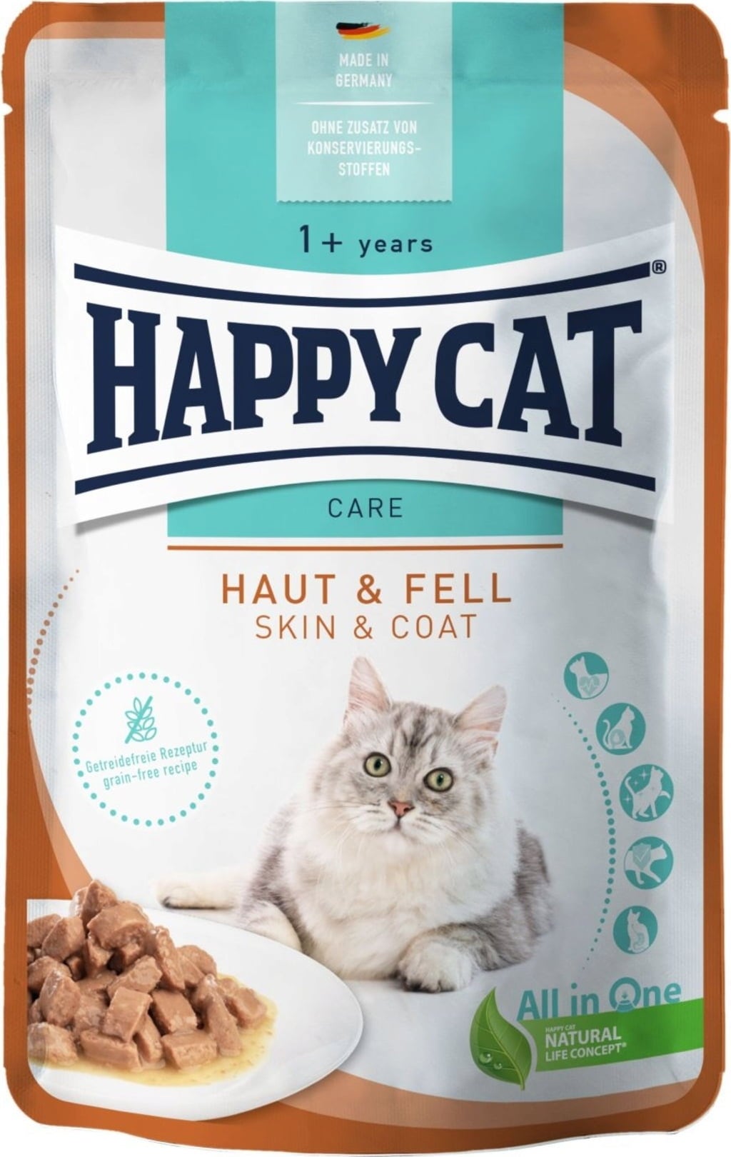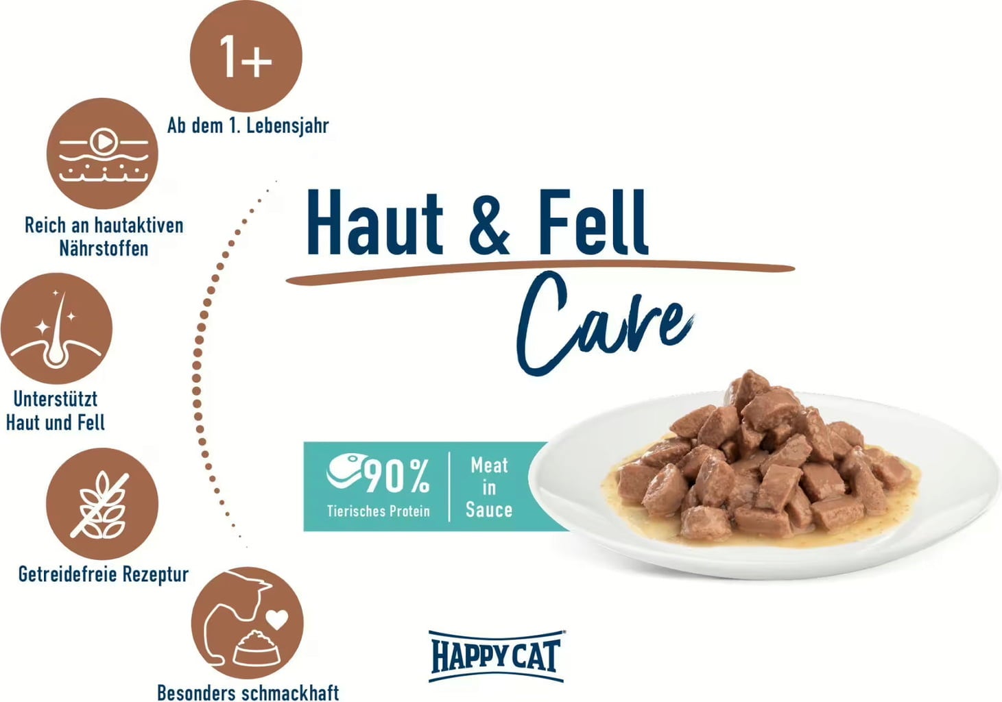 Happy Cat Meat in Sauce Care en Sachet – Peau & Fourrure, 85 g