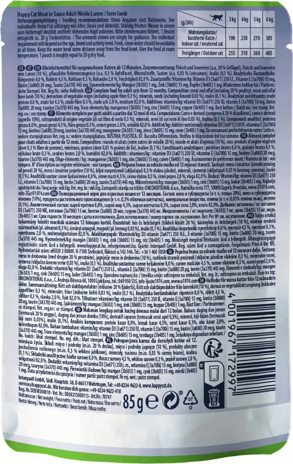 | Fabricant: | Interquell GmbH, Südliche Hauptstraße 38, 86517, Wehringen, Autriche, happycat.de/at |