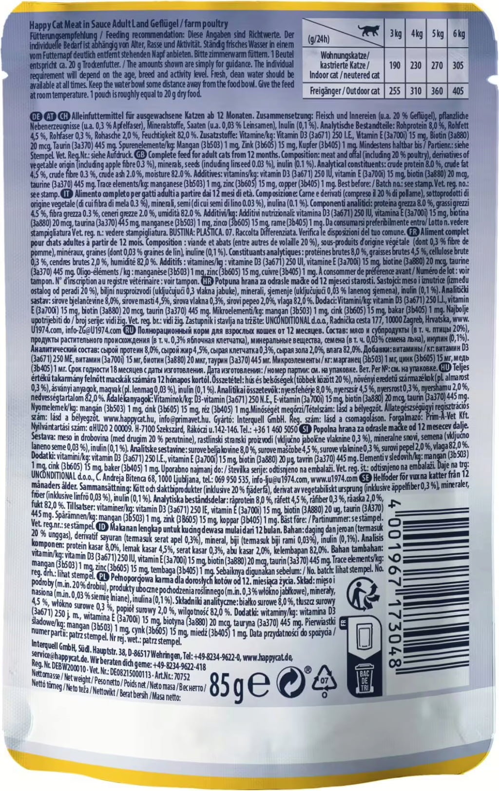 Fabricant: Interquell GmbH, Südliche Hauptstraße 38, 86517, Wehringen, Autriche, happycat.de/at