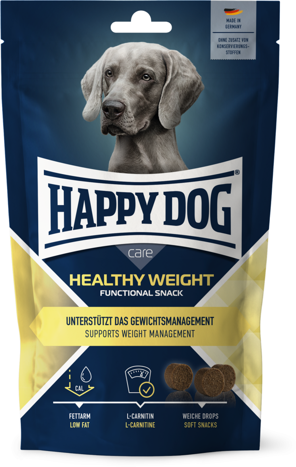 Care Snack Healthy Weight de la marque Happy Dog est un en-cas fonctionnel spécialement conçu pour les chiens en surpoids. L’accent est mis sur une récompense équilibrée qui tient également compte des besoins des chiens ayant des problèmes de poids.