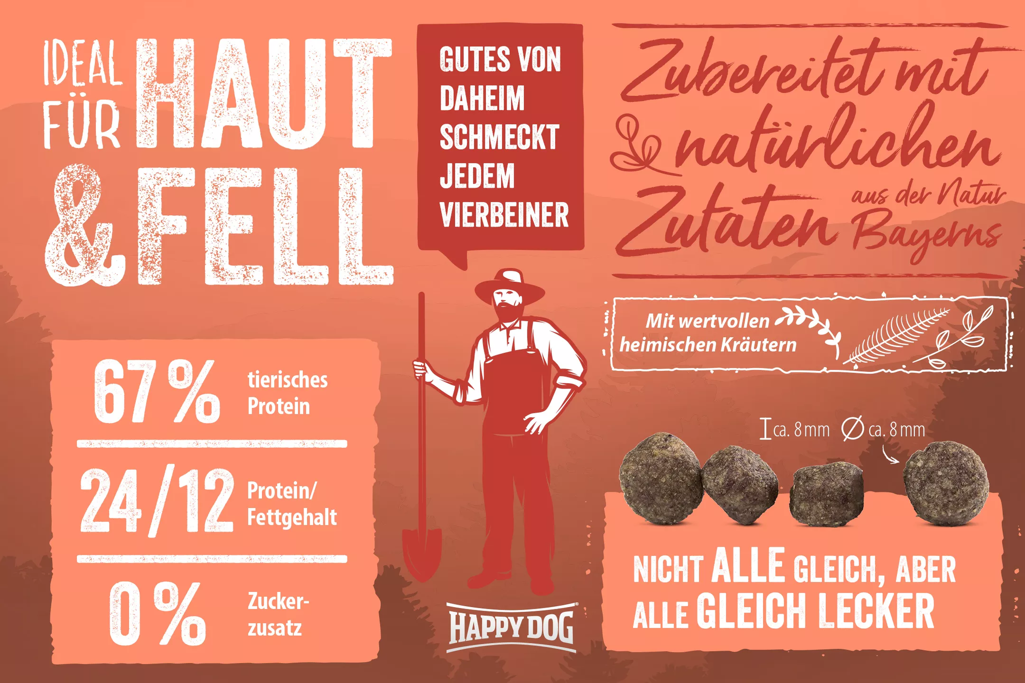 Les croquettes NaturCroq Mini contiennent de savoureux ingrédients issus de la région bavaroise. Le délicieux saumon et le riz facilement digestible offrent non seulement un repas particulièrement savoureux, mais apportent également de précieuses protéines, des vitamines du groupe B et des minéraux. La recette est complétée par des herbes locales sélectionnées. Les croquettes sans sucre et cuites au four (8 × 8 mm) sont adaptées aux besoins des chiens adultes de petite taille ayant un estomac sensible.