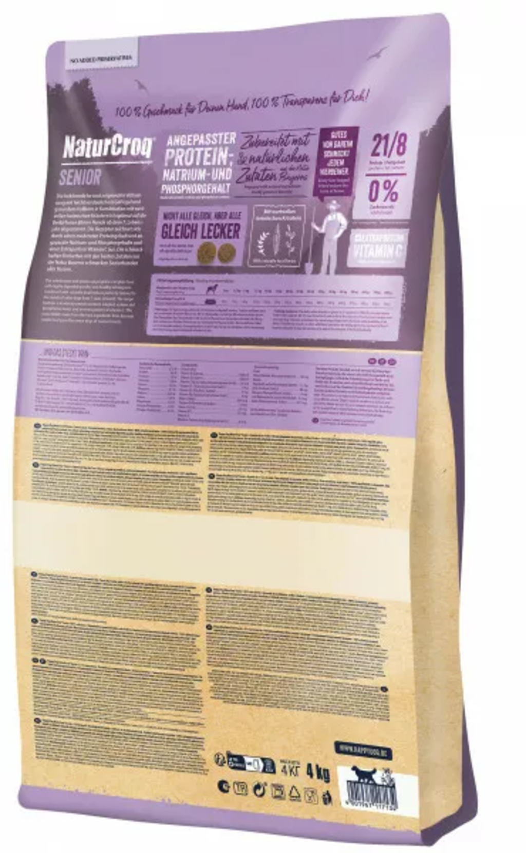 Avec l’âge, le métabolisme du chien évolue et les fonctions organiques diminuent progressivement. Afin de répondre à ces nouveaux besoins, l’alimentation doit être adaptée en conséquence. NatureCroq Senior de Happy Dog propose à votre chien senior de savoureux ingrédients majoritairement issus de la région bavaroise. La délicieuse volaille, les céréales complètes et les herbes locales sont particulièrement douces pour l’estomac et l’intestin. Pour offrir le meilleur aux chiens âgés, la recette présente une teneur adaptée en protéines, phosphore et sodium.