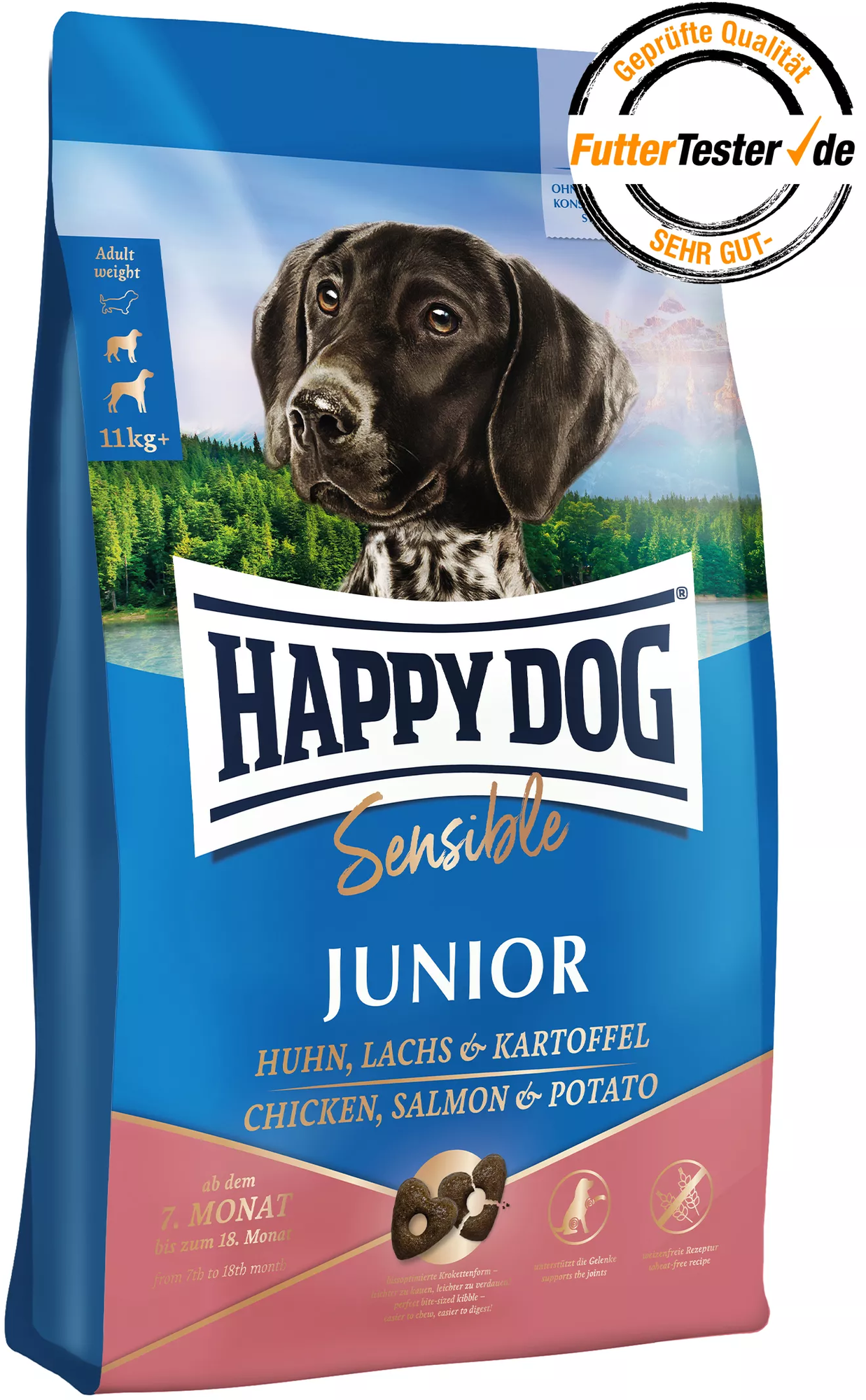 avis en français à propos du produit Happy Dog Croquettes Sensible Junior - Poulet, Saumon, Pommes de Terre