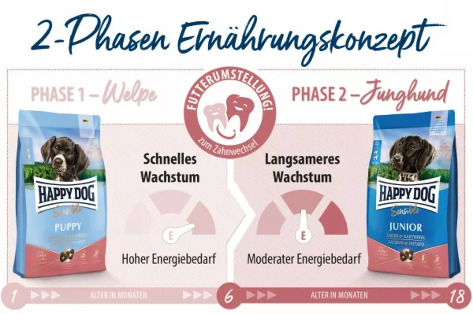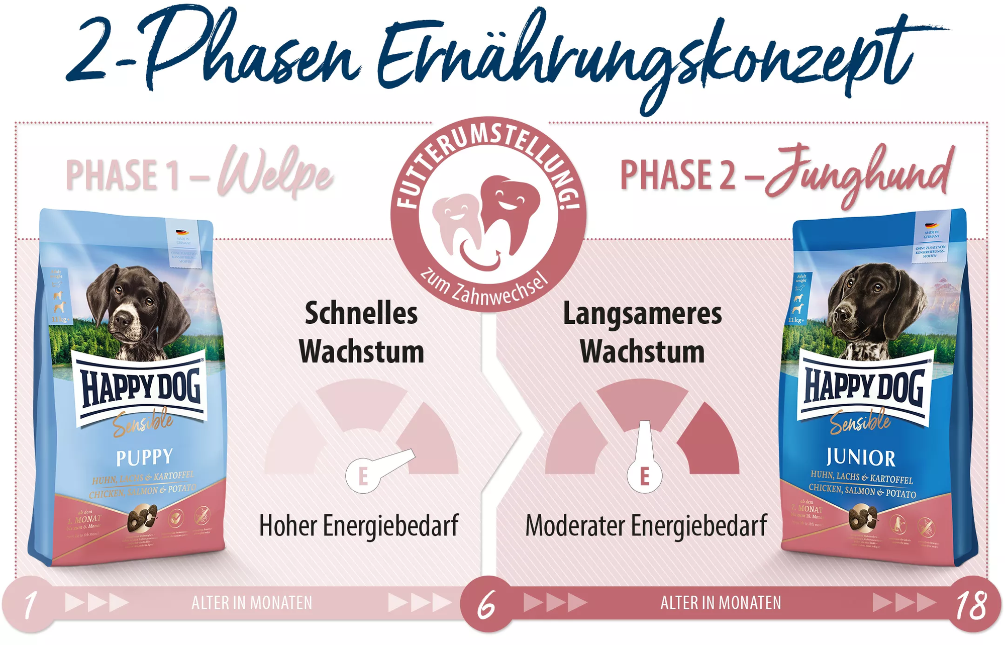 Mode d’emploi : une fois la phase chiot passée, les jeunes chiens ont des besoins énergétiques réduits. Les quantités d’aliment doivent donc être ajustées en conséquence. Veiller à ne pas suralimenter. Si des snacks sont donnés en récompense, il convient de diminuer la ration. Pour une meilleure digestibilité, les croquettes peuvent être humidifiées avec de l’eau (à 60 °C) avant d’être servies.