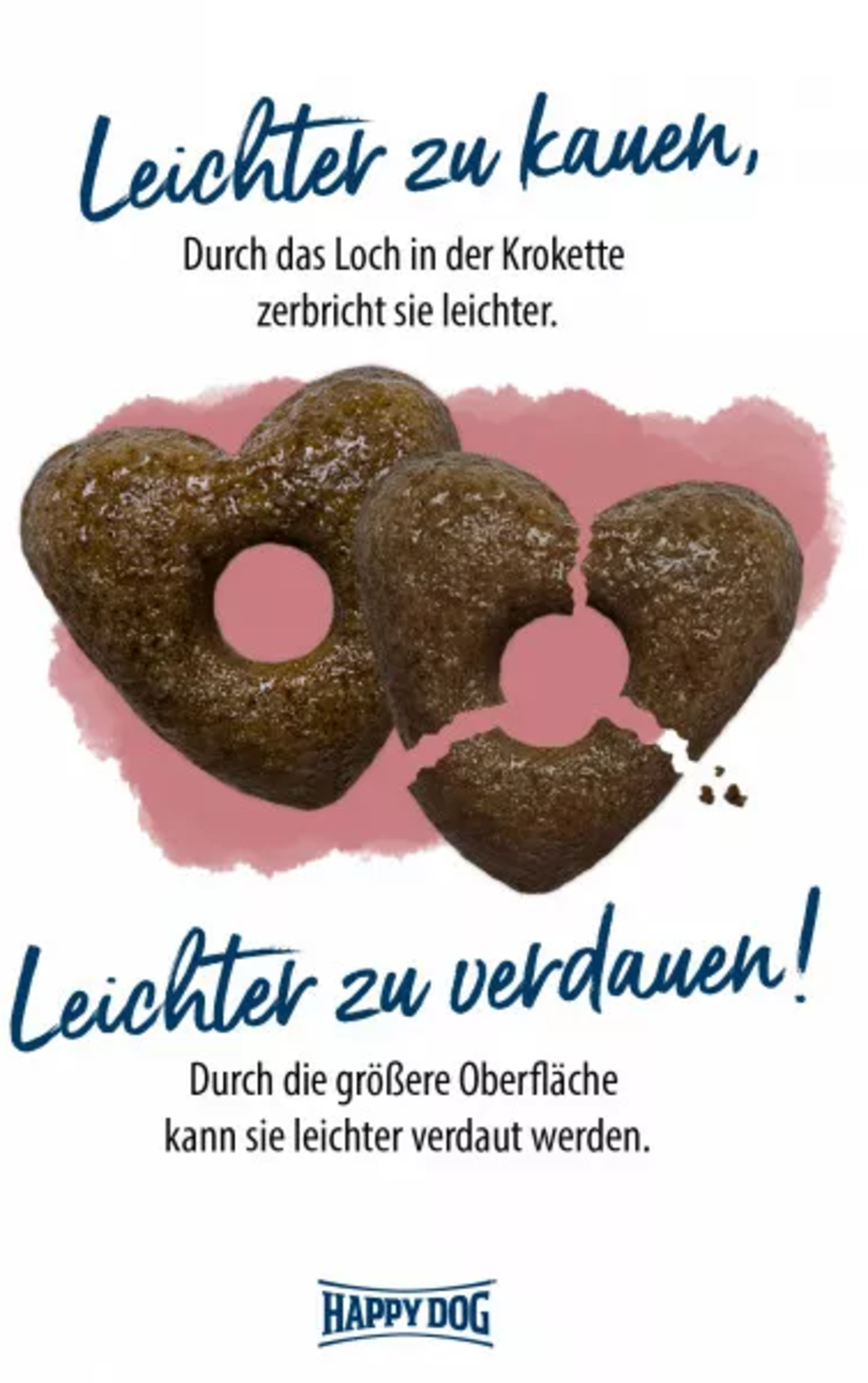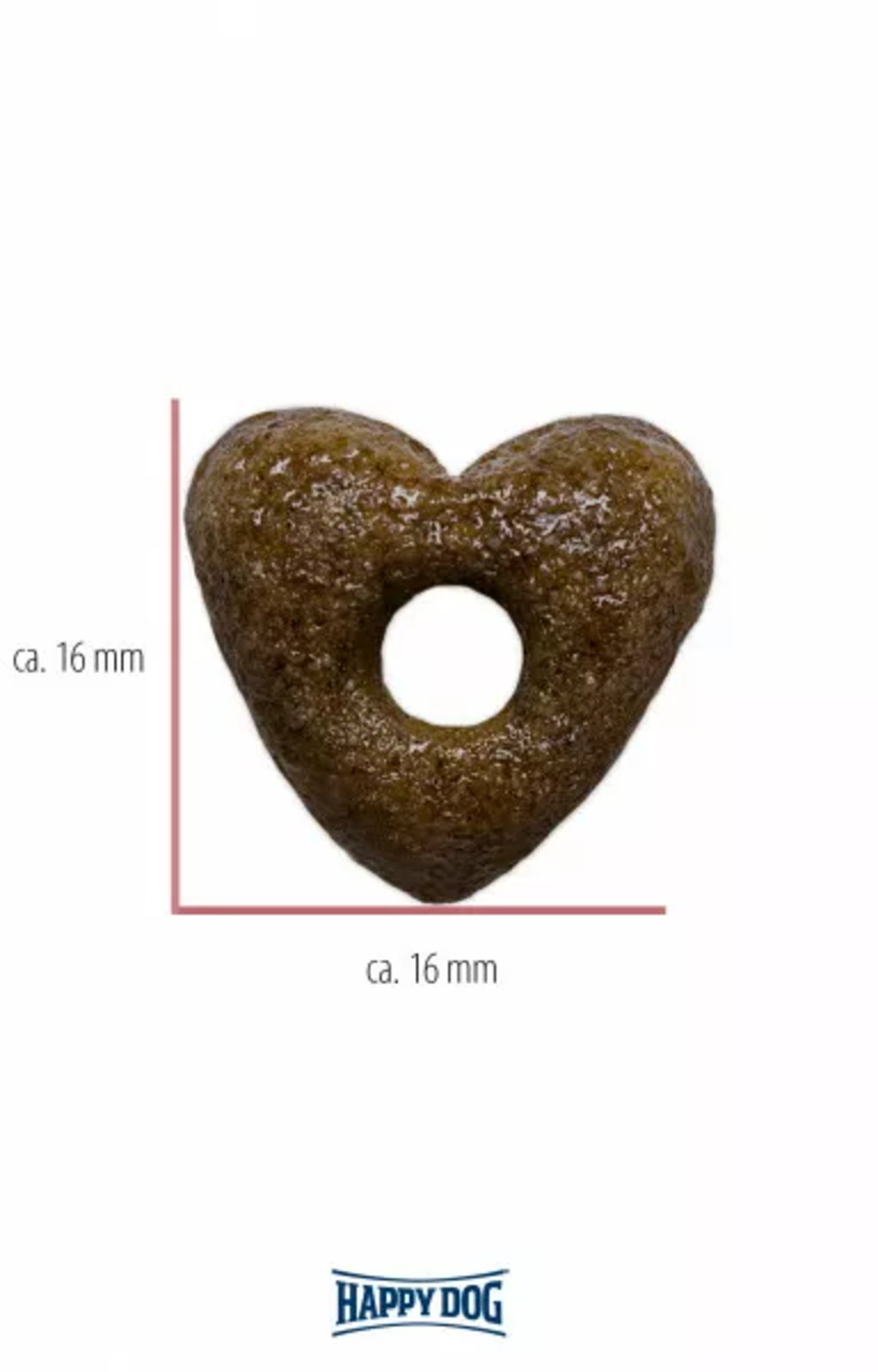 Les croquettes sans gluten en forme de cœur mesurent 16 x 16 mm et présentent une ouverture en leur centre. Cette forme spécifique permet aux croquettes de se fragmenter plus facilement, d’être mieux mastiquées et ainsi d’être plus aisément décomposées par les sucs digestifs dans l’estomac du jeune chien. Idéal pour les chiens sujets aux troubles digestifs.