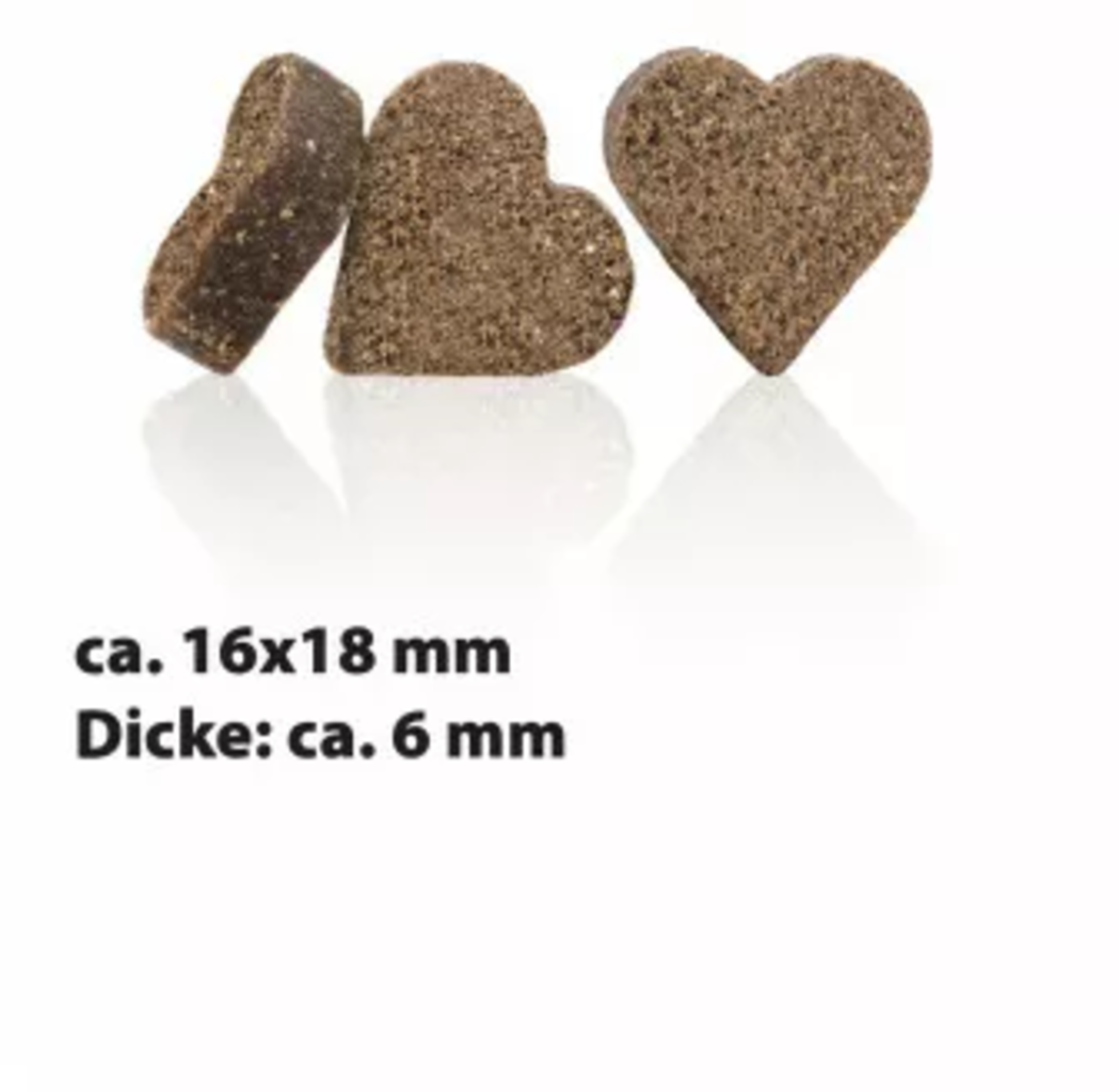 Ces snacks sont sans sucre ni céréales, ce qui les rend adaptés aux chiens souffrant de troubles digestifs et/ou d’intolérances alimentaires. Ce snack en forme de cœur, à base de savoureux saumon et de tendre lapin, séduit par son goût irrésistible. Il apporte également de précieux acides gras oméga-3 et oméga-6.
