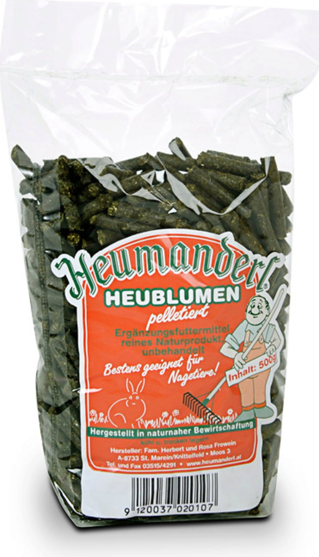 Les granulés de foin de Heumanderl sont un aliment complémentaire non traité pour petits animaux. Ce produit naturel en pellets est pressé à partir de fleurs de foin, au sein d'une exploitation en gestion naturelle d'Autriche.