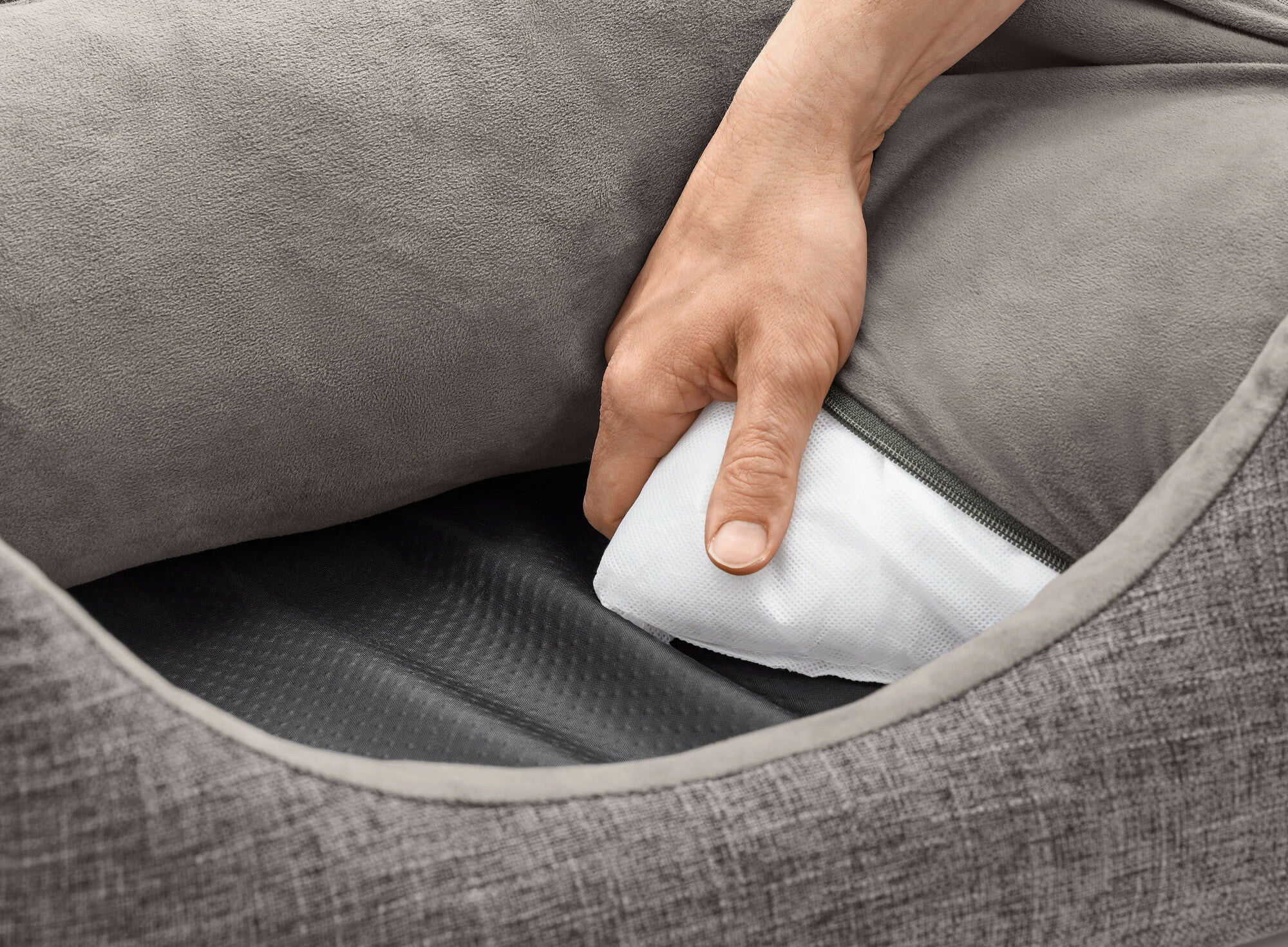 Grâce à son matelas en mousse à mémoire de forme qui soulage les points de pression, il offre un endroit idéal pour se reposer. La colonne vertébrale et les articulations sont soutenues de manière optimale et les douleurs peuvent être soulagées. Un bord surélevé offre au chien un endroit confortable pour poser sa tête. Des picots antidérapants au sol empêche le panier de glisser lorsque le chien s'y installe ou en sort.