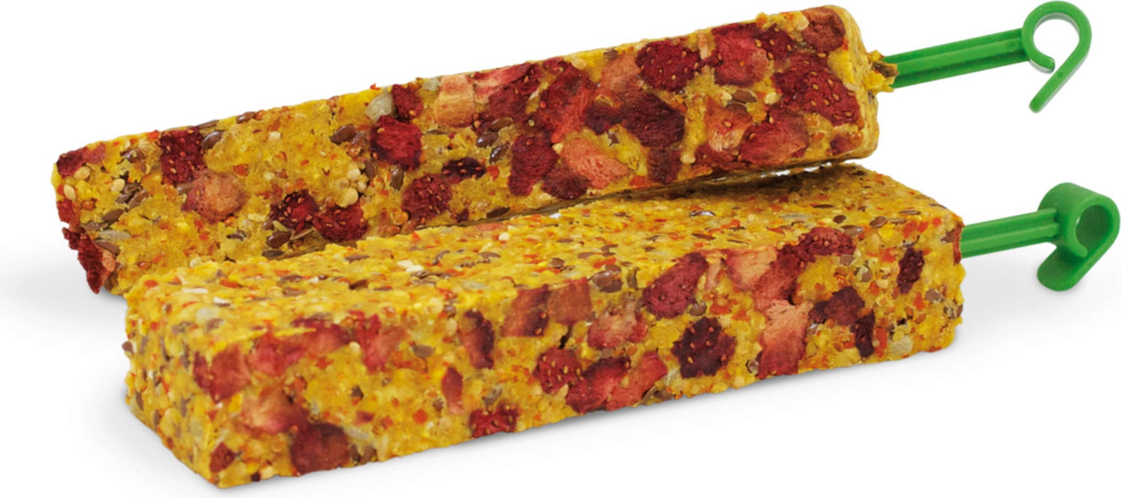Maïs, Blé, carotte séchée, graines de lin, Noix, millet plata, millet Manna, graines de tournesol striées, huile de colza, Amidon de pois, 1,2 % fraise