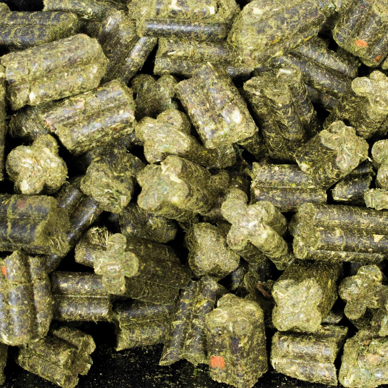 repousse de prairie permanente des Préalpes (composé entre autres de fléole noueuse, amarante, fromental, dactyle aggloméré, avoine pubescente, pâturin des prés, trèfle des prés, renoncule âcre, flouve odorant, houlque laineuse, avoine jaunâtre, vesce à feuilles étroites, luzerne lupuline, Löwenzahn, plantain lancéolé, primevère officinale, grande marguerite, pâquerette, grande pimprenelle, caille-lait blanc, panais, Oseille, véronique petit-chêne, céraiste commun, ray-grass allemand, brome mou, vesce craque, vesce sauvage, orchis dentelé, renoncule bulbeuse, rhinanthe mineur, cerfeuil sauvage, achillée millefeuille), Flocons de pois, flocons de fèves, carotte séchée, panais, graines de lin, Nigelle, menthe poivrée, ortie, mélisse, betterave rouge, 0,7 % persil, pomme , graines de fenouil, 0,3 % Löwenzahn, fleur de camomille