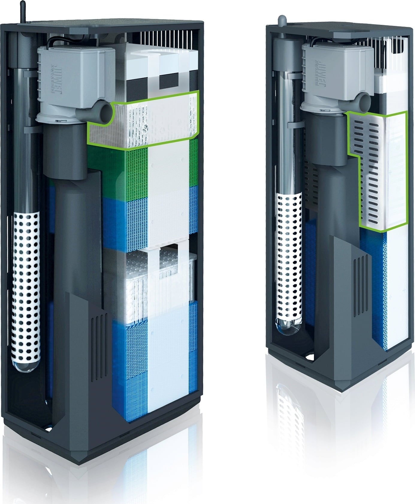 Juwel Bioflow a été testé scientifiquement à plusieurs reprises par des instituts indépendants et est depuis longtemps l'un des systèmes de filtration leaders mondiaux dans l'aquariophilie moderne et a déjà fait ses preuves des millions de fois. Le système de filtration Juwel Bioflow se distingue par son volume de filtration particulièrement important. Il y a donc assez de place pour une excellente filtration mécanique, chimique et biologique, ce qui garantit une durée de vie accrue du filtre et des intervalles de maintenance prolongés. La construction du filtre vous permet également d'accéder facilement à la pompe et au chauffage, et l'utilisation de paniers filtrants spéciaux garantit un retrait et un nettoyage faciles du matériau filtrant.