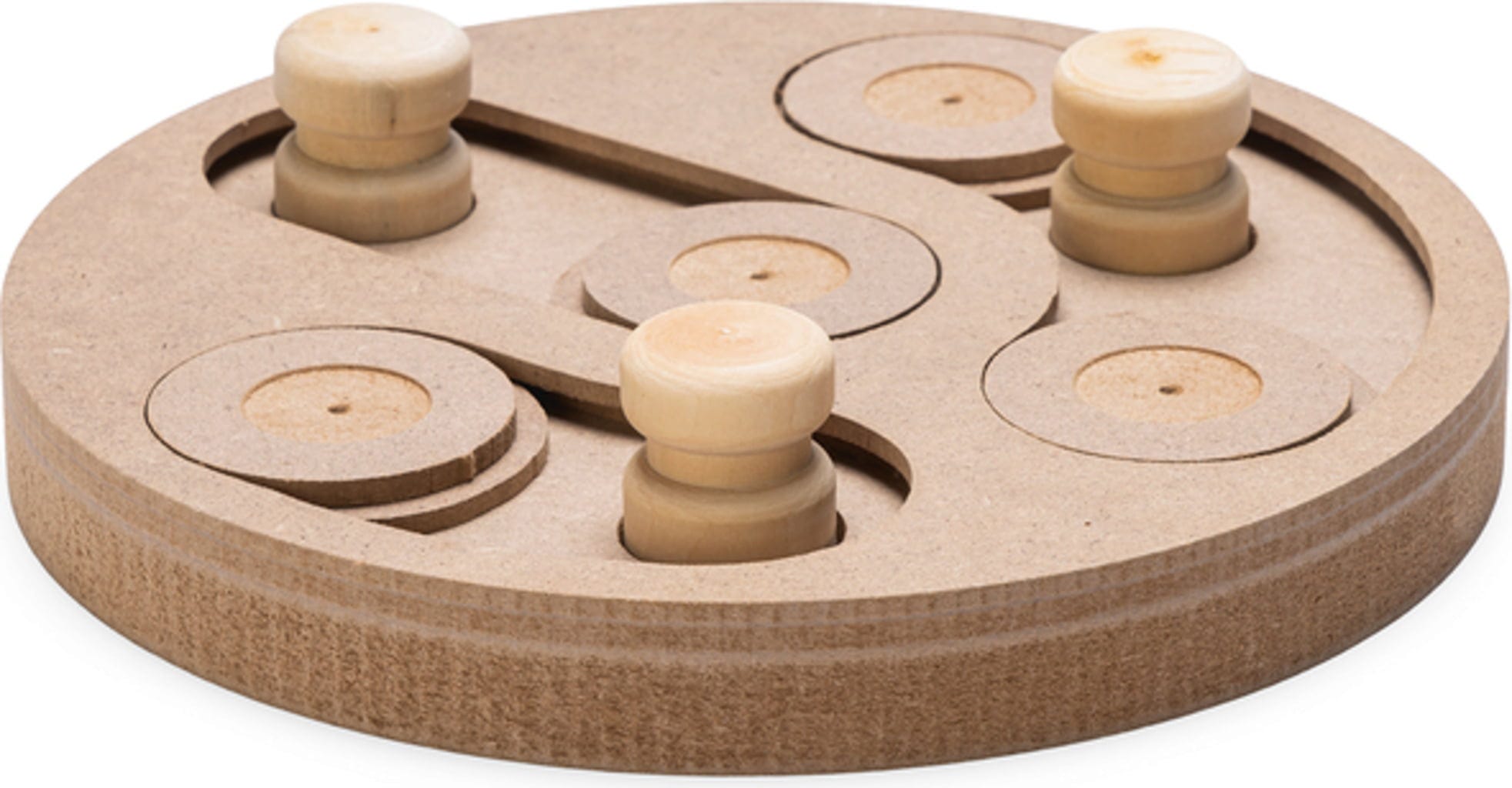 Un seul jeu, deux possibilités : d’un côté, des cônes que votre compagnon doit soulever pour atteindre ses friandises tant convoitées ; de l’autre, des curseurs qu’il doit faire glisser. De quoi stimuler pleinement ses capacités intellectuelles et garantir un jeu sans ennui.